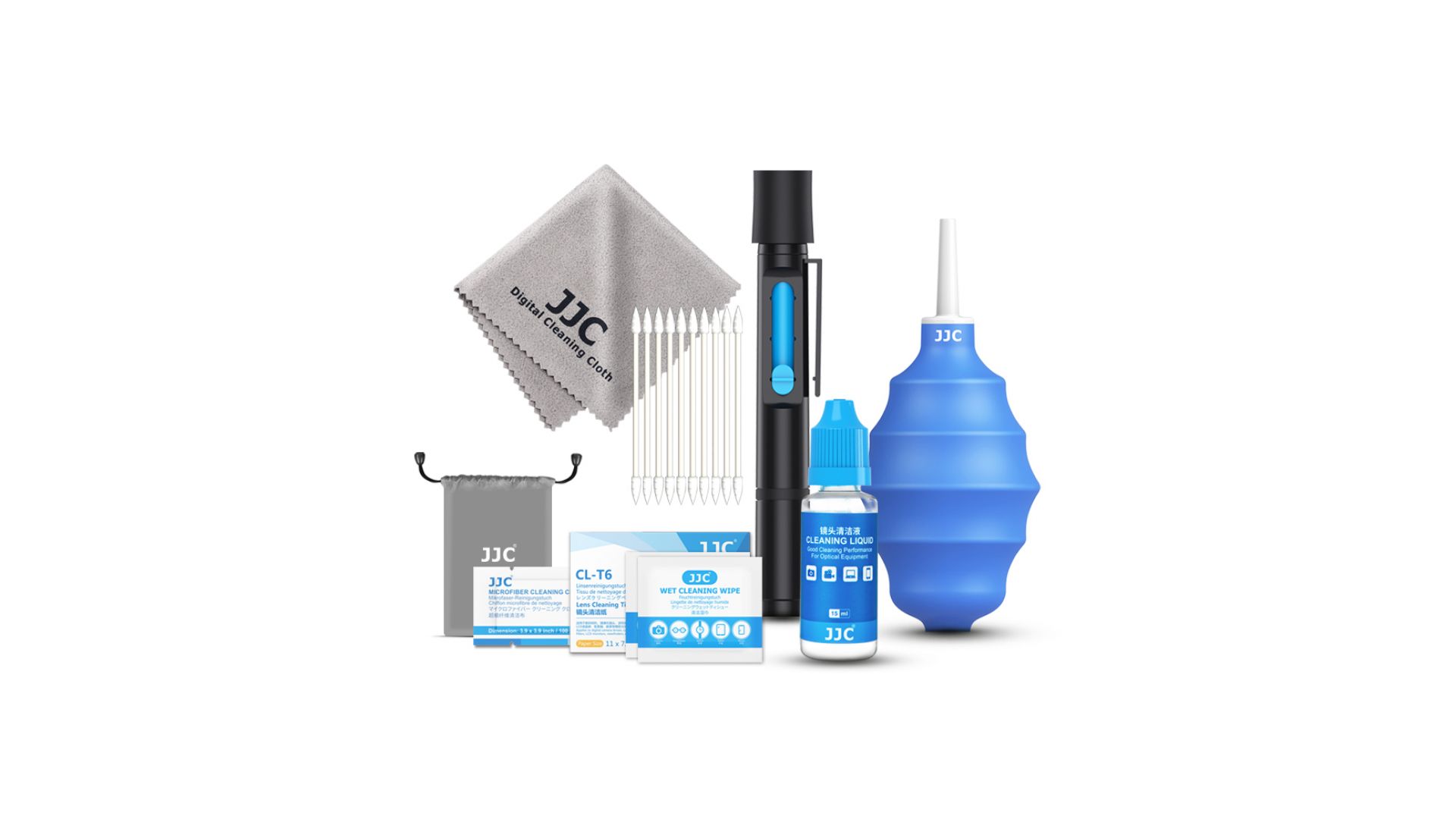 Профессиональный набор для чистки оптики JJC CL-9 — это комплексное решение для безупречного ухода за вашей фототехникой. Всё необходимое для безопасного и эффективного удаления пыли, отпечатков пальцев и загрязнений с объективов, камер, фильтров и другой хрупкой оптики собрано в одной удобной сумке для хранения.