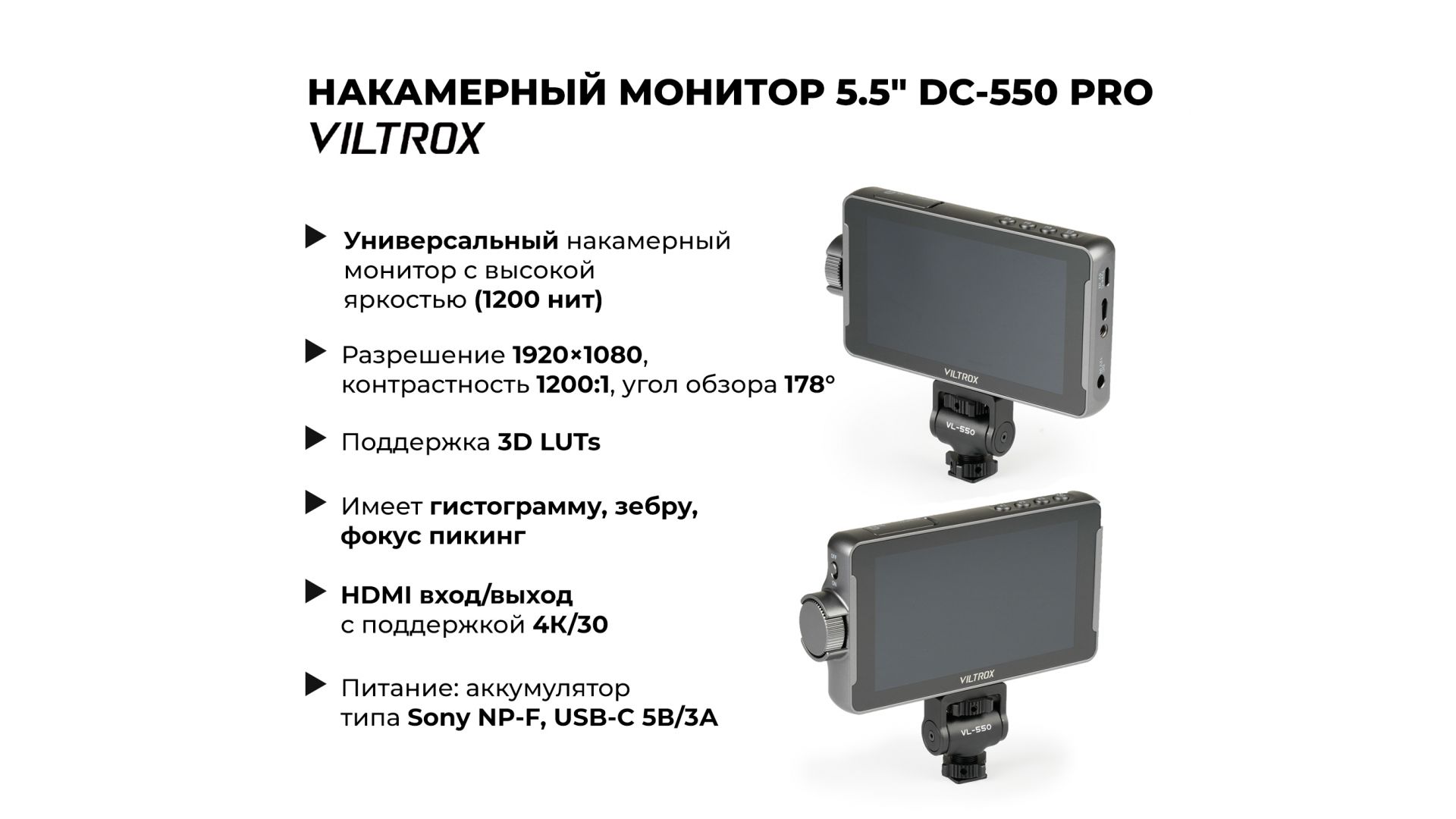 Основные возможности монитора VILTROX DC-550 Pro: