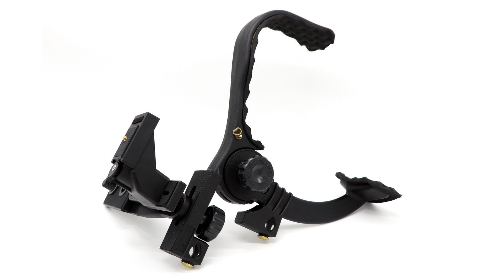 Легкий, компактный (в сложенном положении) наплечный штатив для фото и видеосъемки. Благодаря использованию жесткого и прочного инженерного пластика, металлических осей, в статике он выдерживает нагрузку до 5 кг. Конструкция представляет из себя «коромысло» — задняя часть которого является наплечником с мягкой резиновой вставкой, а передняя — несущей площадкой для крепления подвижного узла с установочным местом для камеры и осветителя (микрофона). Этот подвижный узел может поворачиваться в пределах 180 градусов, а также передвигаться вдоль по несущей площадке «коромысла» в пределах 25 мм. Выбранное положение фиксируется нижним прижимным винтом. К оси «коромысла» закреплен нижний (подвижный, подпружиненный) изогнутый рычаг — для упора в грудь оператора. Его положение фиксируется любым из двух зажимных винтов — слева и справа от оси. В штативе имеются два посадочных места для установки конструкции на стойку с наконечником 5/8 дюйма.