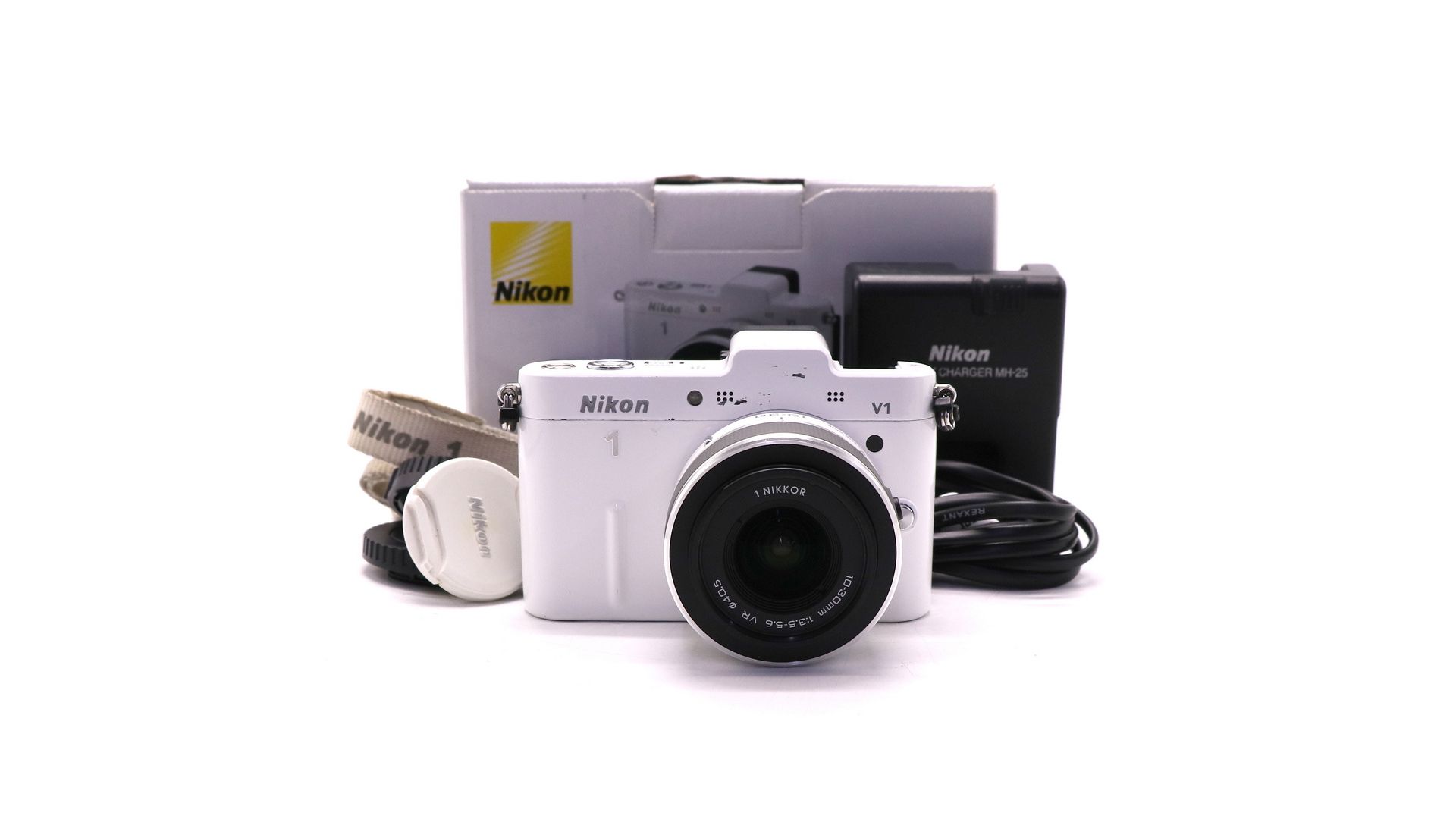 Комплектация:Коробка, объектив Nikon 10-30mm f/3.5-5.6 VR, крышки, аккумулятор, зарядное устройство, ремень, документы.