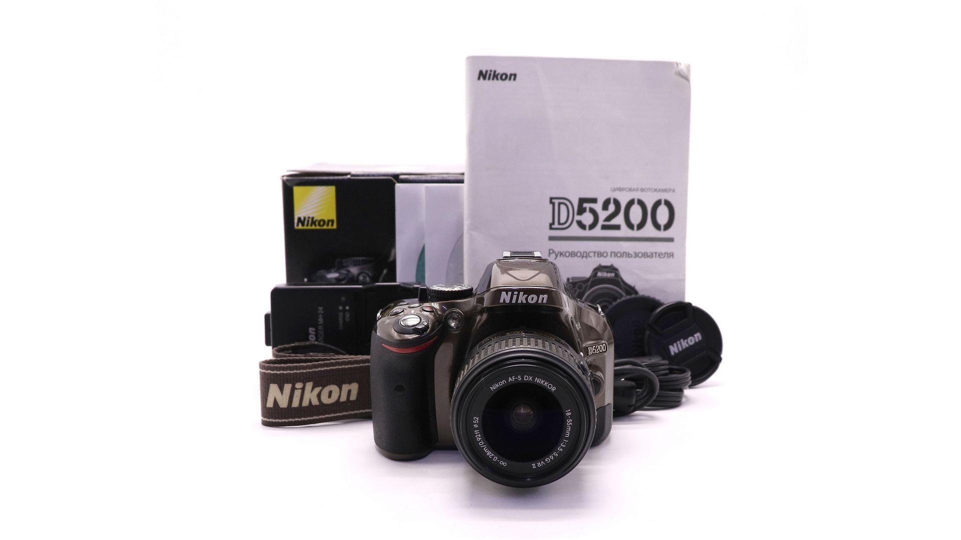 Комплектация:Коробка, объектив AF-S DX 18-55mm f/3.5-5.6G VR II, аккумулятор, зарядное устройство, документы, ремень, крышки, USB кабель, AV кабель.