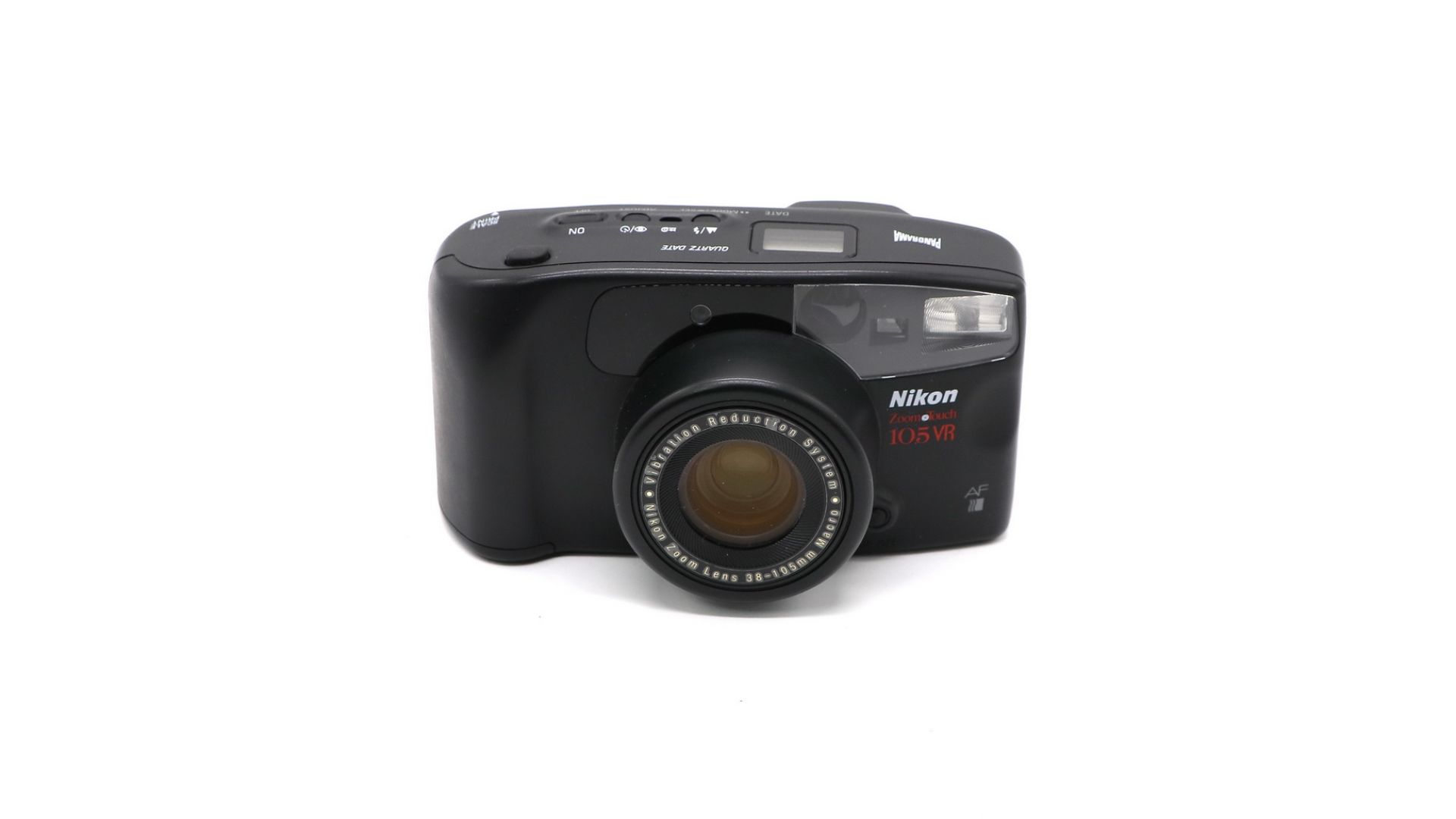 Zoom•Touch 105 VR 35 мм, была представлена компанией Nikon в 1994 году. Эта камера также была изготовлена с функцией кварцевой даты, VR означает функцию уменьшения оптической вибрации.