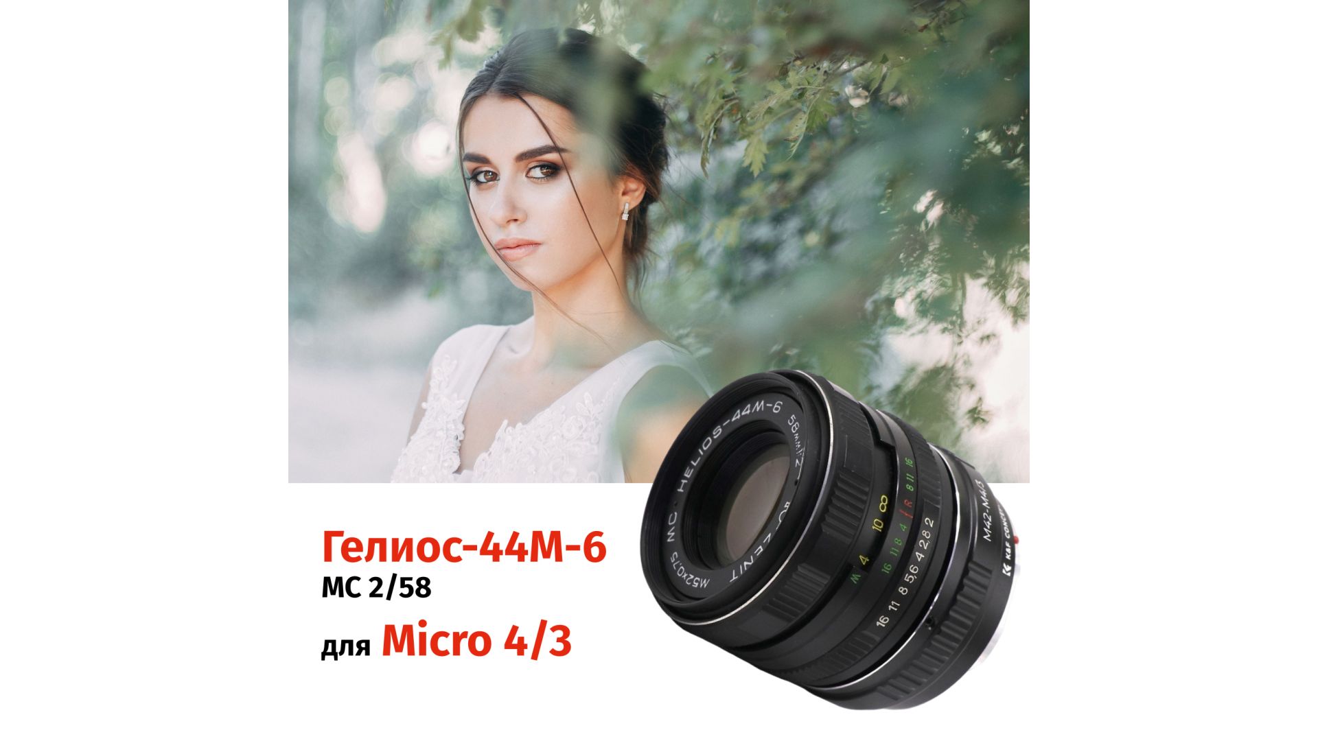 Комплектация:Объектив Гелиос-44М-6 МС 2/58 (М42), переходник M42 - Micro 4/3 от бренда K&F Concept.