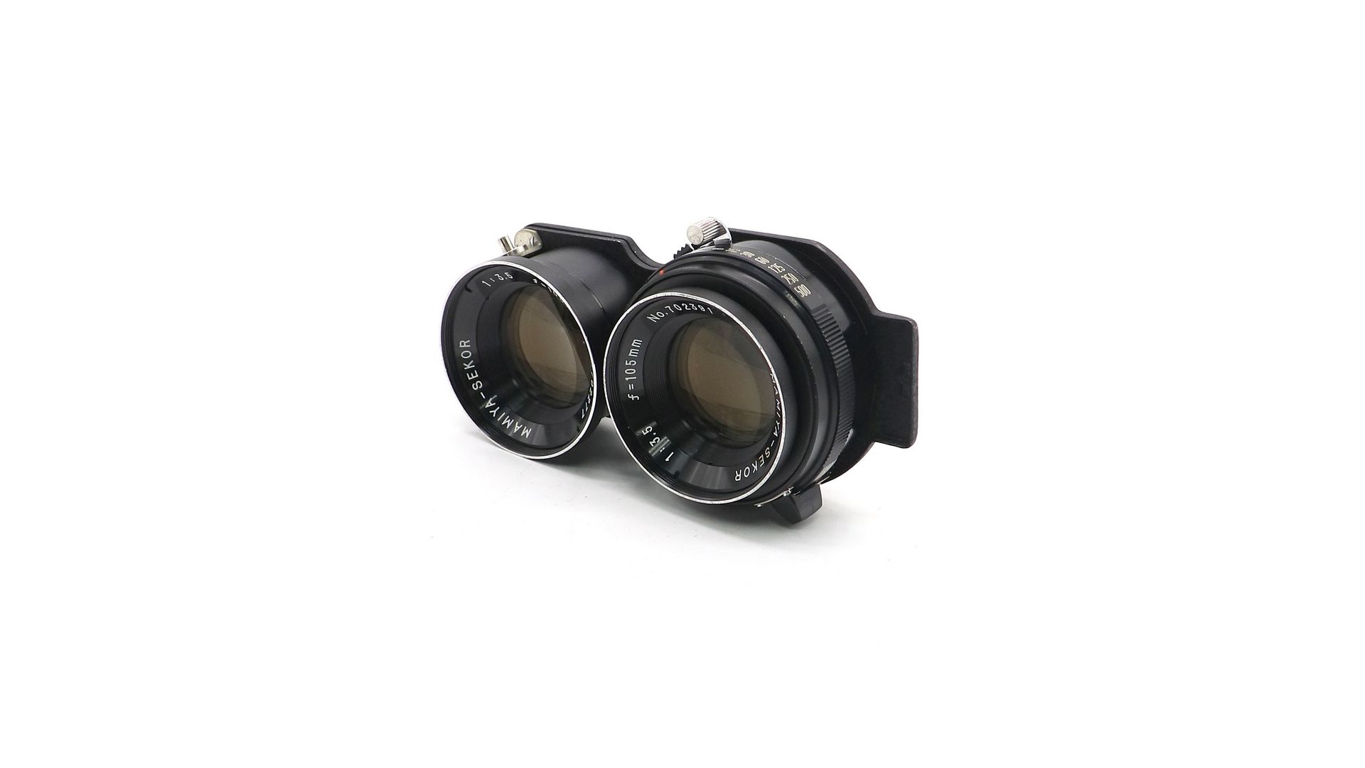 – Отличительные особенности: фокусное расстояние 105 мм, светосила f/3.5, встроенный затвор, угол обзора 41°, диапазон диафрагм f/3.5–f/32, совместимость с Mamiya TLR