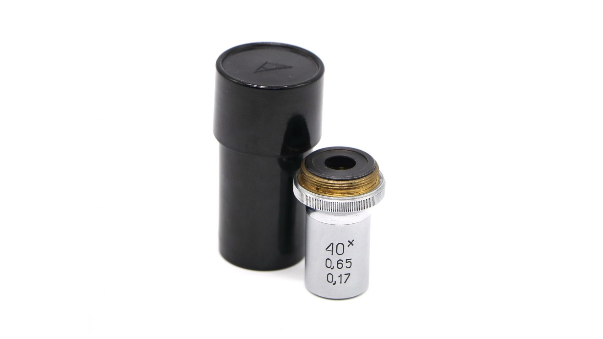 Ахроматический объектив для лабораторных микроскопов. Увеличение объектива — 40 крат. Апертура 0.65.