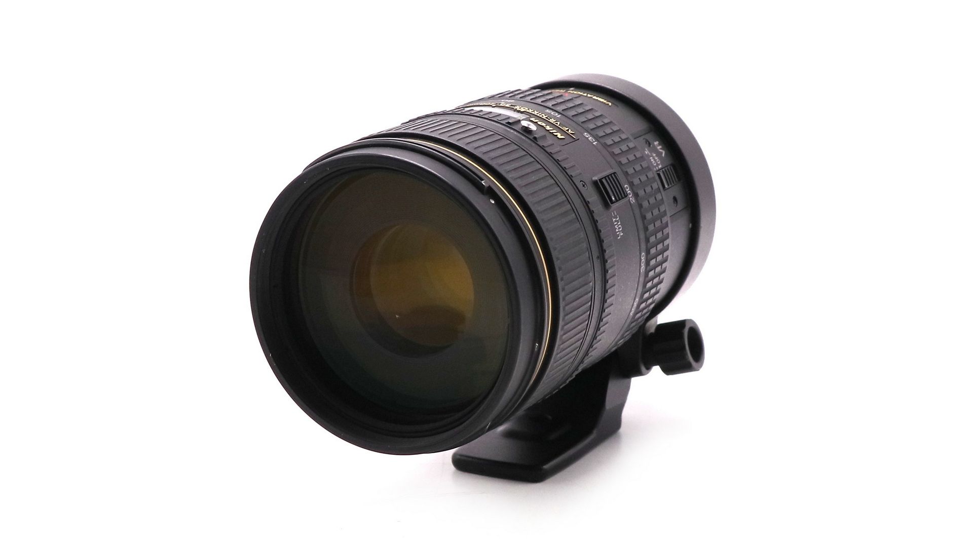 Данный экземпляр — самый первый объектив Nikon Nikkor со встроенным стабилизатором. Nikon 80-400mm f/4.5-5.6D ED VR AF Zoom-Nikkor использует стабилизатор VR (Vibration Reduction — технология Nikon для Подавление Вибраций), который может компенсировать 3 стопа по выдержке. В числовом эквиваленте это означает, что можно снимать на выдержках в 8 раз длиннее, чем того требует объектив без стабилизатора. Например, снимая неподвижные предметы на 400 мм фокусного расстояния, вместо ограничения в 1/400 сек., можно снимать на 1/60 сек. Диафрагма объектива состоит из 9 скругленных лепестков, которые формируют ровное отверстие. Минимальная дистанция фокусировки составляет 2.3 метра (по всему диапазону фокусных расстояний), при этом можно снимать макро с максимальным увеличением 1:4.8.