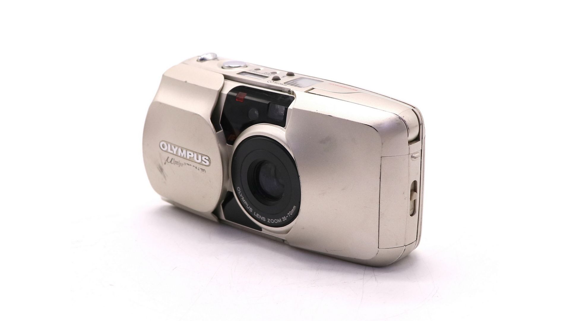 Olympus mju Zoom 70 – классическая плёночная «мыльница» с зум-объективом 35–70 мм, сочетающая простоту управления и качественную оптику. Автоматические системы (фокусировка, перемотка плёнки, встроенная вспышка) делают съёмку комфортной даже для новичков.
