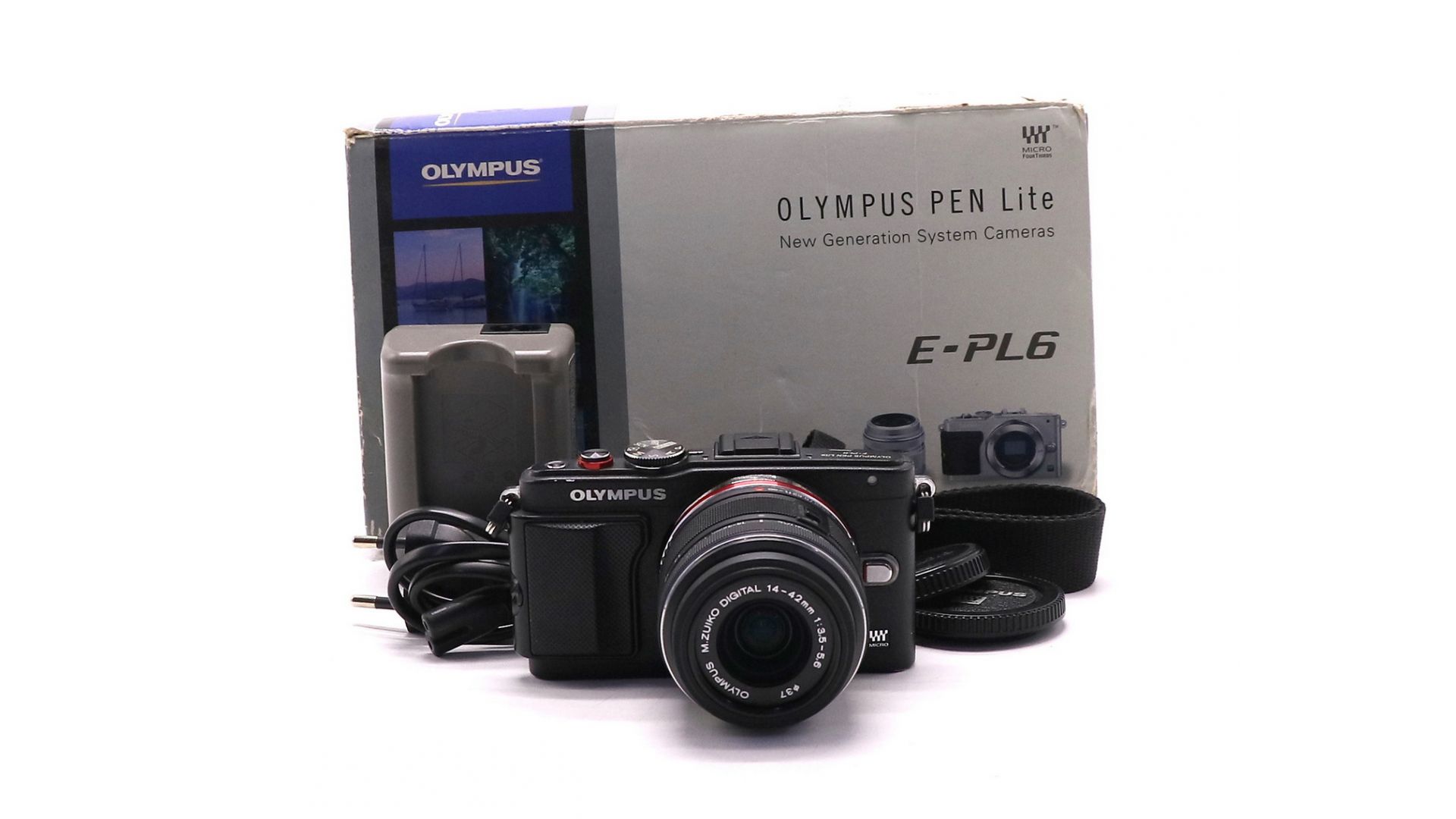 Комплектация:Коробка, документы, аккумулятор, ообъектив Olympus Zuiko Digital 14-42mm f/3.5-5.6, зарядное устройство, крышки объектива, крышка байонета, ремень.