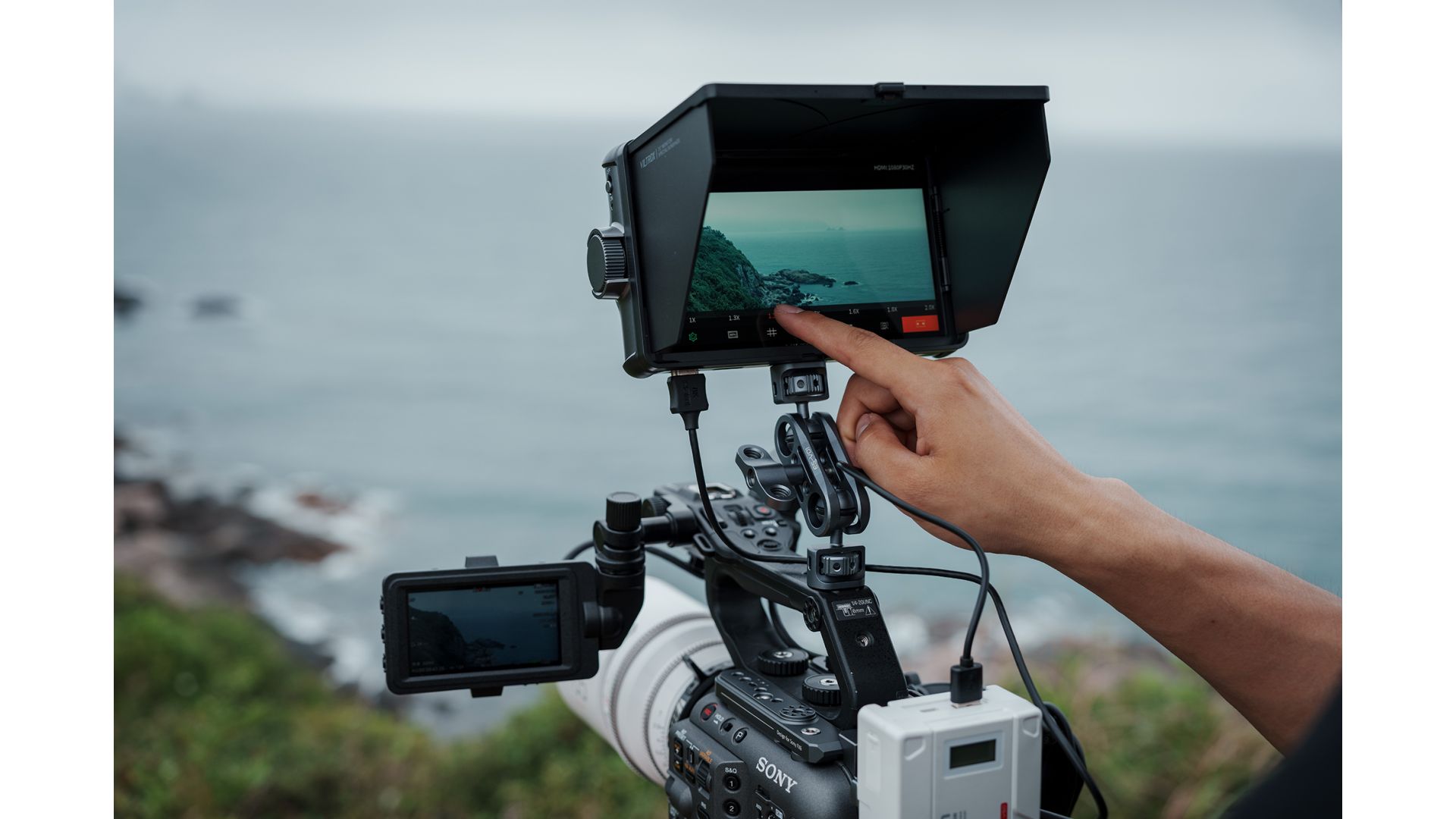Яркий 7-дюймовый IPS-дисплей с рекордной яркостью 2800 кд/м² обеспечивает четкое изображение даже при прямом солнечном свете. В комплекте — солнцезащитный козырёк и защитный чехол. Поддержка 4K60 через HDMI с петлевым выходом сигнала.