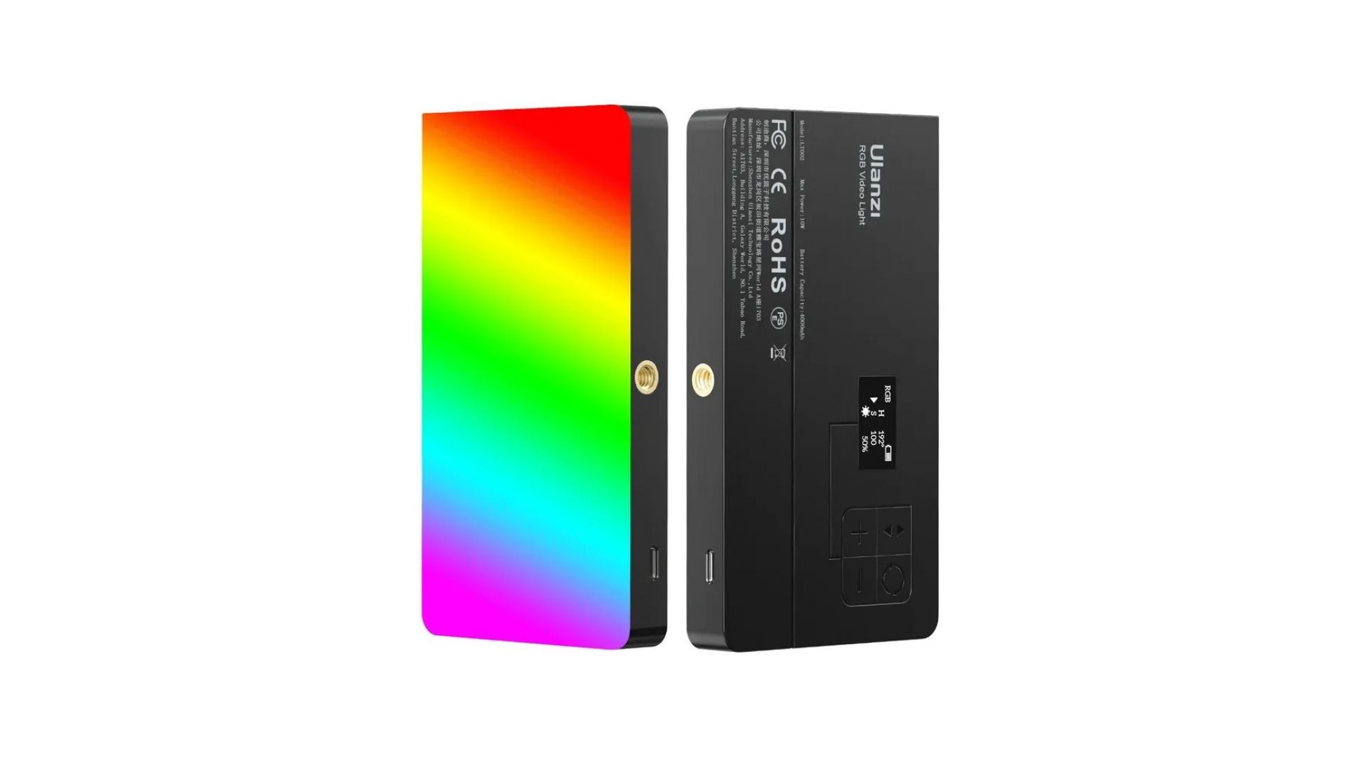 Светодиодная панель LT002 с RGB режимом и диагональю в 7". Он весит всего 200 грамм и легко помещается в кармане. Устройство крайне удобно брать с собой в поездки или использовать вне студий. Благодаря встроенному аккумулятору большой емкости емкостью 4000 мАч видеосвет может работать автономно до 90 минут при максимальной яркости, а также поддерживает функцию зарядки во время использования.