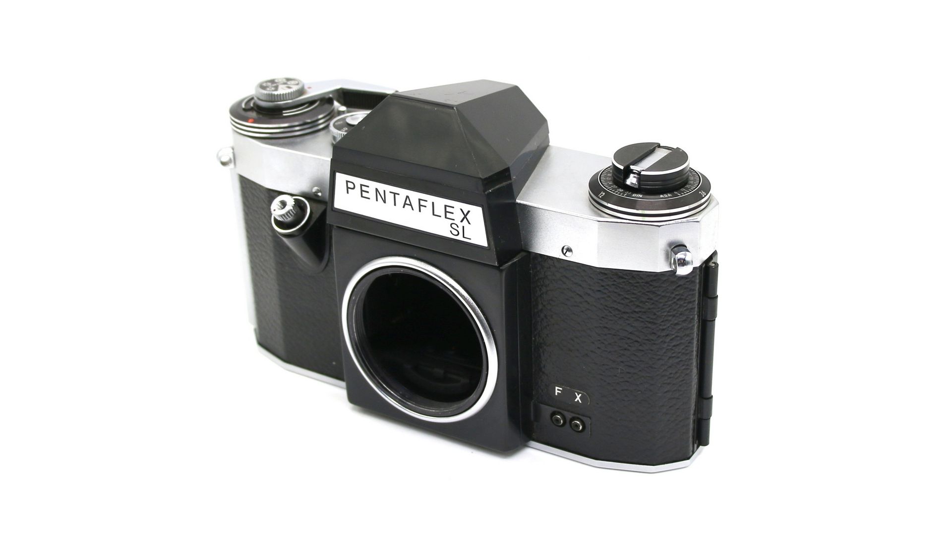 - Вспышка: синхронизация X- (1/40 с) и F- (1/30) с двумя коаксиальными гнездами для вспышки в нижней части передней части корпуса камеры.