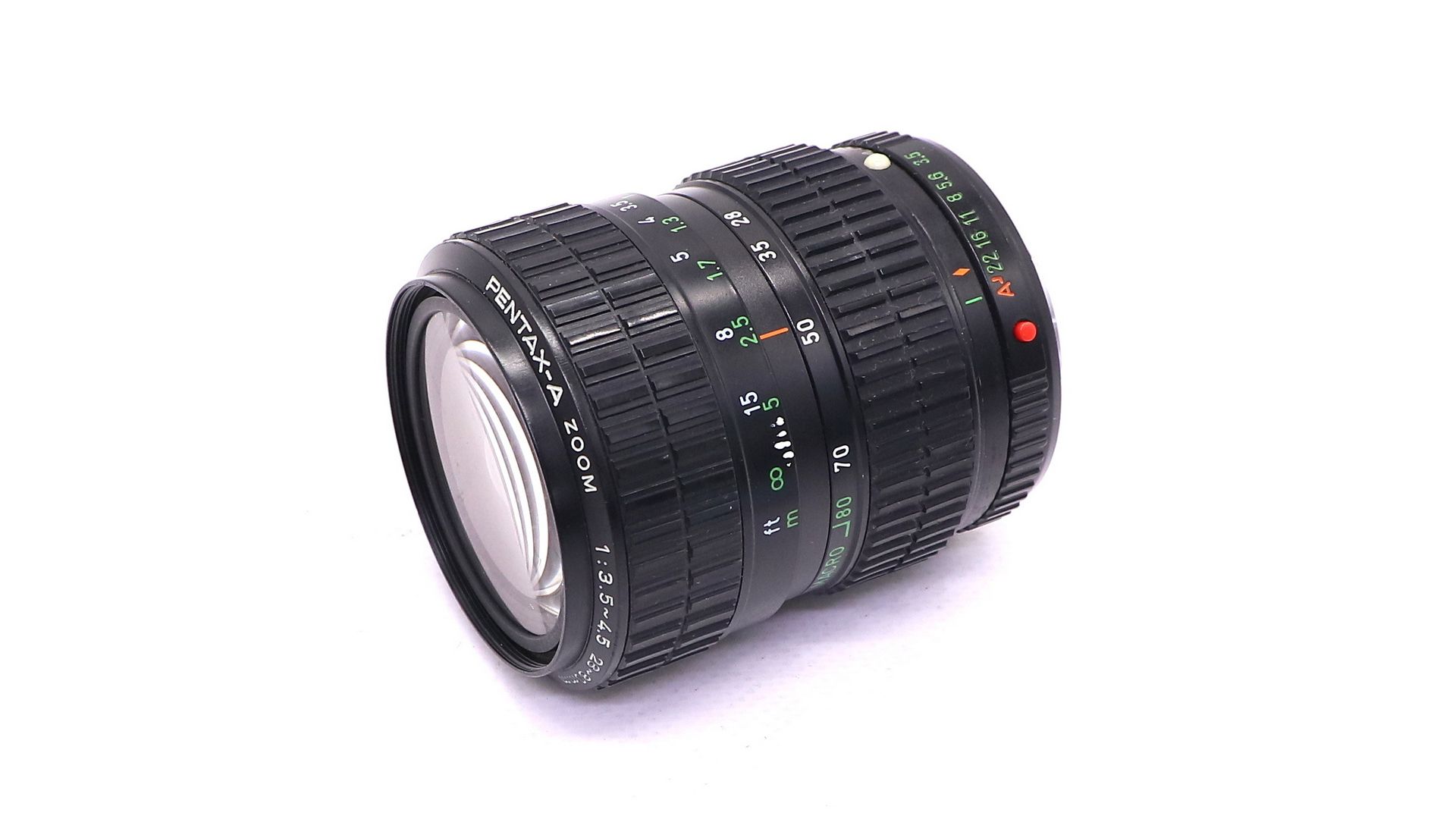 Pentax-A 28-80 mm f/ 3.5-4.5 - стандартный объектив с переменным фокусным расстоянием и мультипросветлением для 35мм зеркальных фотоаппаратов системы Pentax K. Оптическая схема: 8 элементов в 8 группах. Количество лепестков диафрагмы – 8 штук. Минимальная дистанция фокусировки – 1 м. Объектив формирует контрастное и насыщенное изображение. Показывает мягкую картинку с приятным боке.