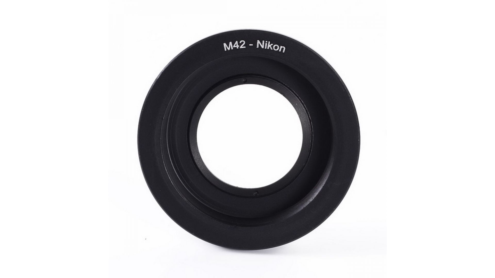 Адаптер позволяет устанавливать объективы с резьбой (креплением) М42 на зеркальные камеры Nikon (байонет Nikon F). Оснащен встроенной линзой, которая позволяет фокусироваться на бесконечность.