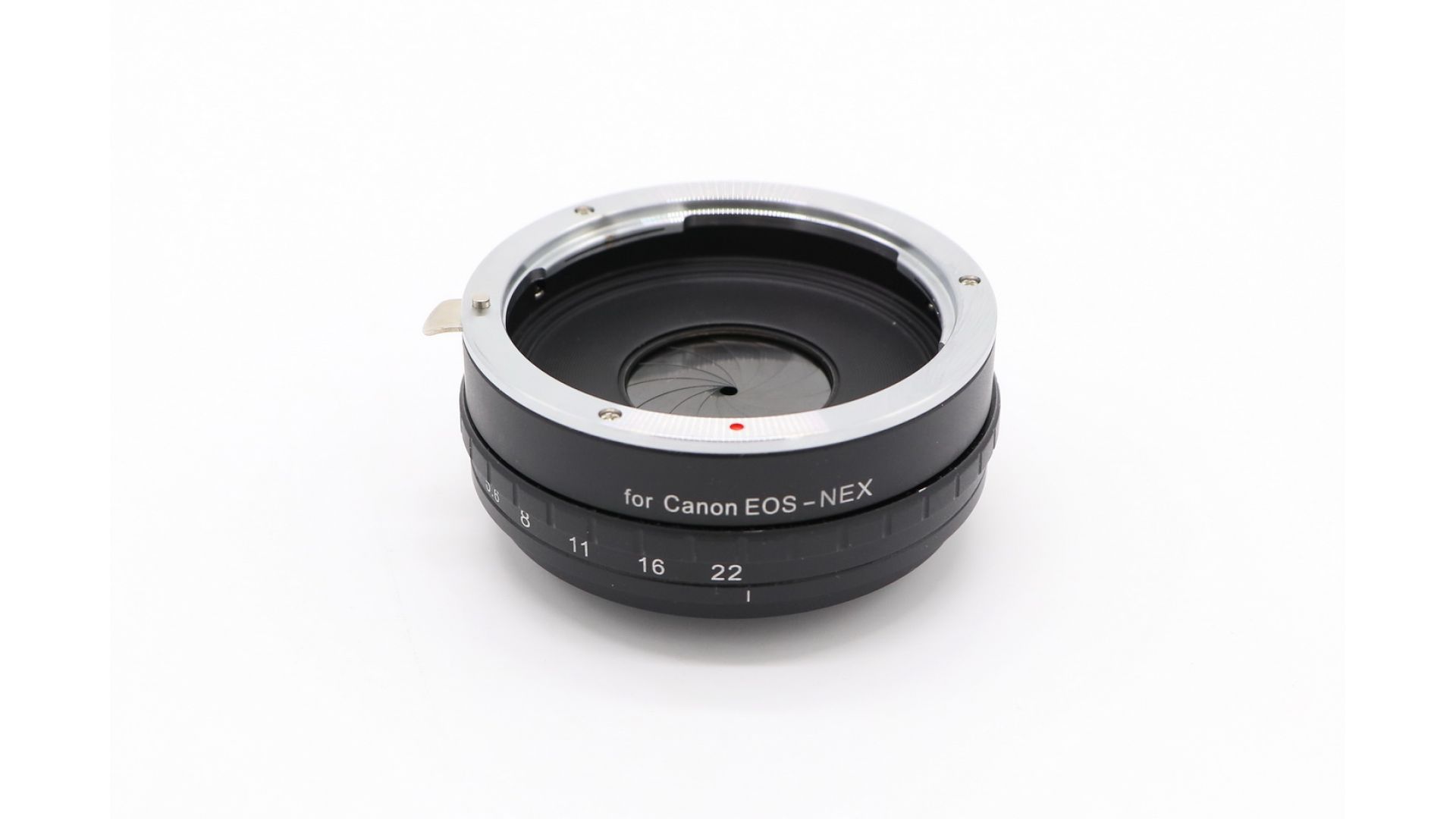 Главной отличительной особенностью этого переходника является наличие 14-лепестковой ирисовой диафрагмы, приводимой в движение кольцом на оправе переходника.