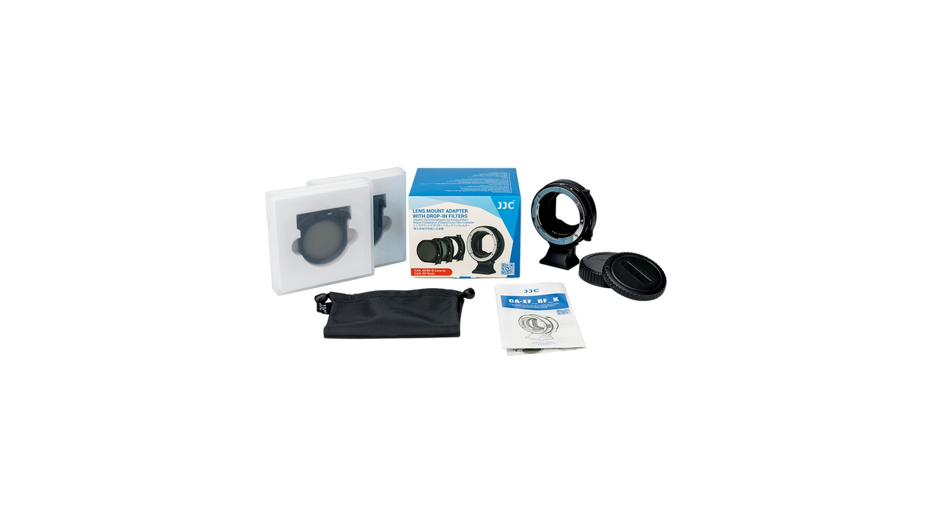 Комплектация:Автофокусный адаптер JJC Canon EF-EOS R, Drop-In CPL фильтр, Drop-In ND-фильтр (ND3-ND500), Drop-In рамка, крышки, чехол для хранения