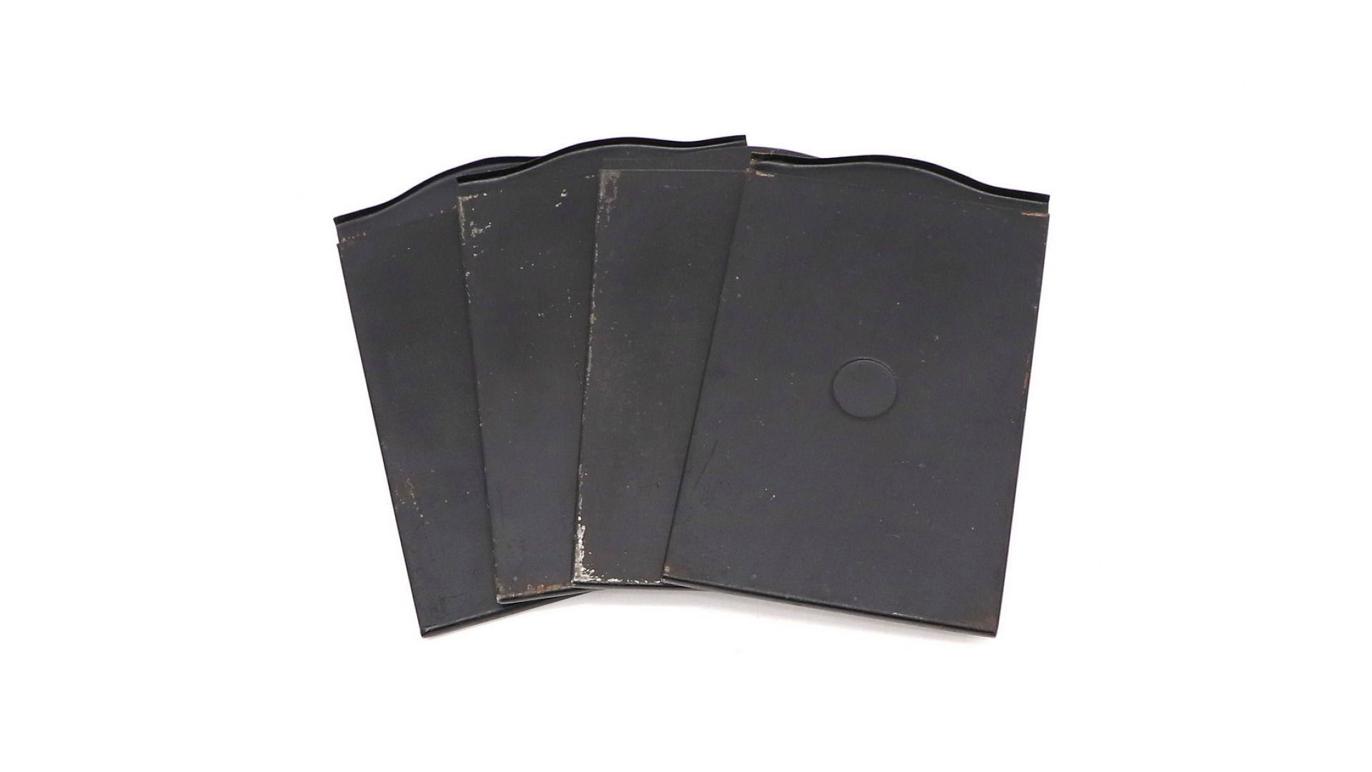 Предназначены для складных ретро фотоаппратов. В разборную железную пластину вставляется негативная стекляная пластинка, когда фотоаппарат готов к работе, пластина поднимается, давая обзор негативному слайду. Путем спуска затвора производится снимок, далее пластина задвигается. Если нет запасной пластины, то фотоаппарат придется собрать, снова вытащить ее и идти проявлять. При покупке пластин вы сможете избежать данные неудобства.