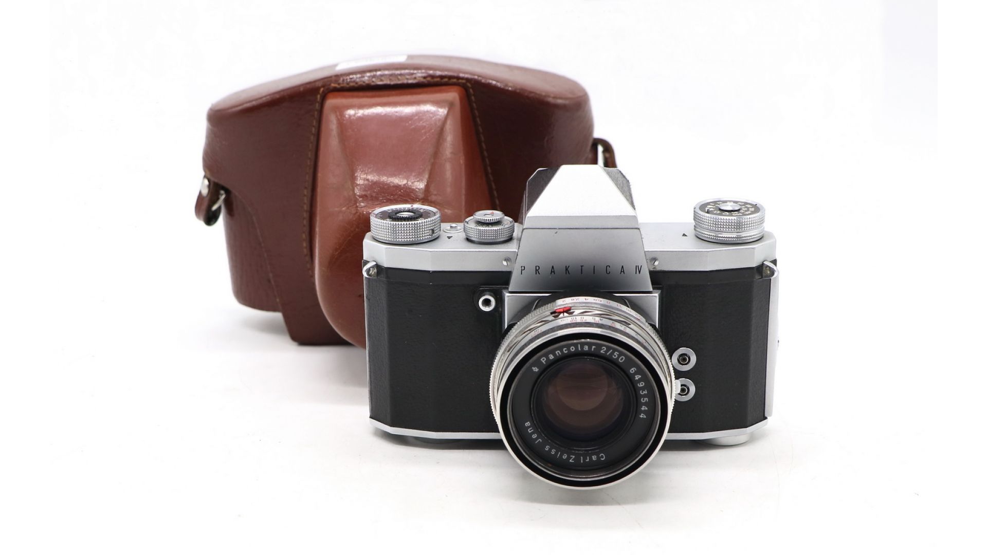 Основанная на Praktica FX, Praktica IV была фактически первой Praktica, имеющей фиксированную пентапризму и рычаг быстрого продвижения (внизу), и последней моделью, продаваемой KW самостоятельно, до того, как компания была поглощена Pentacon. Carl Zeiss Jena Pancolar 50mm f/2 - нормальный объектив с постоянным фокусным расстоянием для 35мм зеркальных камер c присоединительной резьбой М42. Система: M42, Exakta. Оптическая схема: 6 элементов в 4 группах Планар.