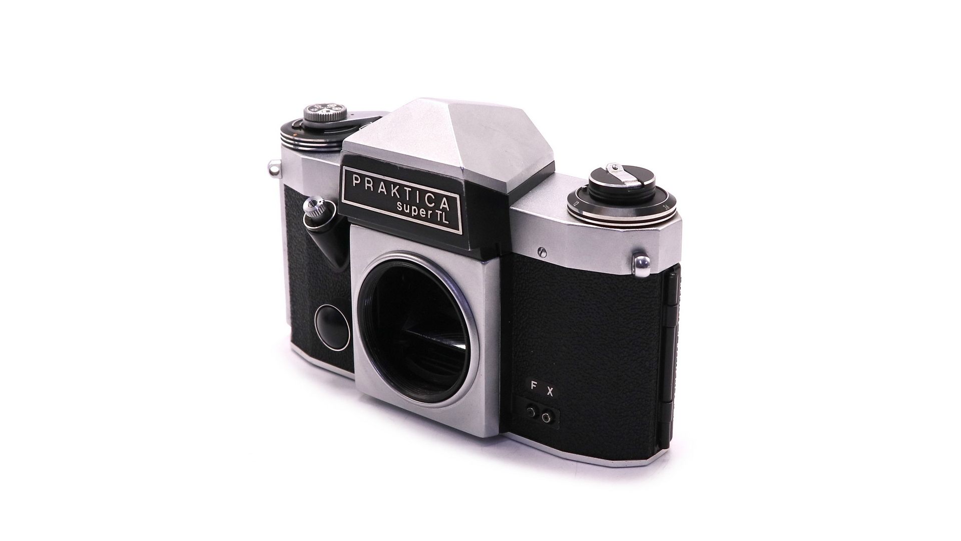 Затвор фотоаппарата имеет диапазон от 1 до 1/500 сек. и выставляется поворотом головки на верхней панели рядом с взводной головкой. Поворотом этой же головки, если её приподнять вверх, выставляется чувствительность плёнки в стандарте DIN или ASA. В левой части панели расположена головка обратной перемотки плёнки и памятный диск, на котором можно выставить количество кадров используемой плёнки — 12, 20 или 36 кадров. Рядом со взводной головкой кнопка расцепки плёнки для обратной перемотки. Спусковая кнопка удобно расположена в верхней части передней панели и имеет резьбу для тросика мягкого спуска. Внизу левой части панели — два гнезда синхроконтакта вспышки "F" и "X".
