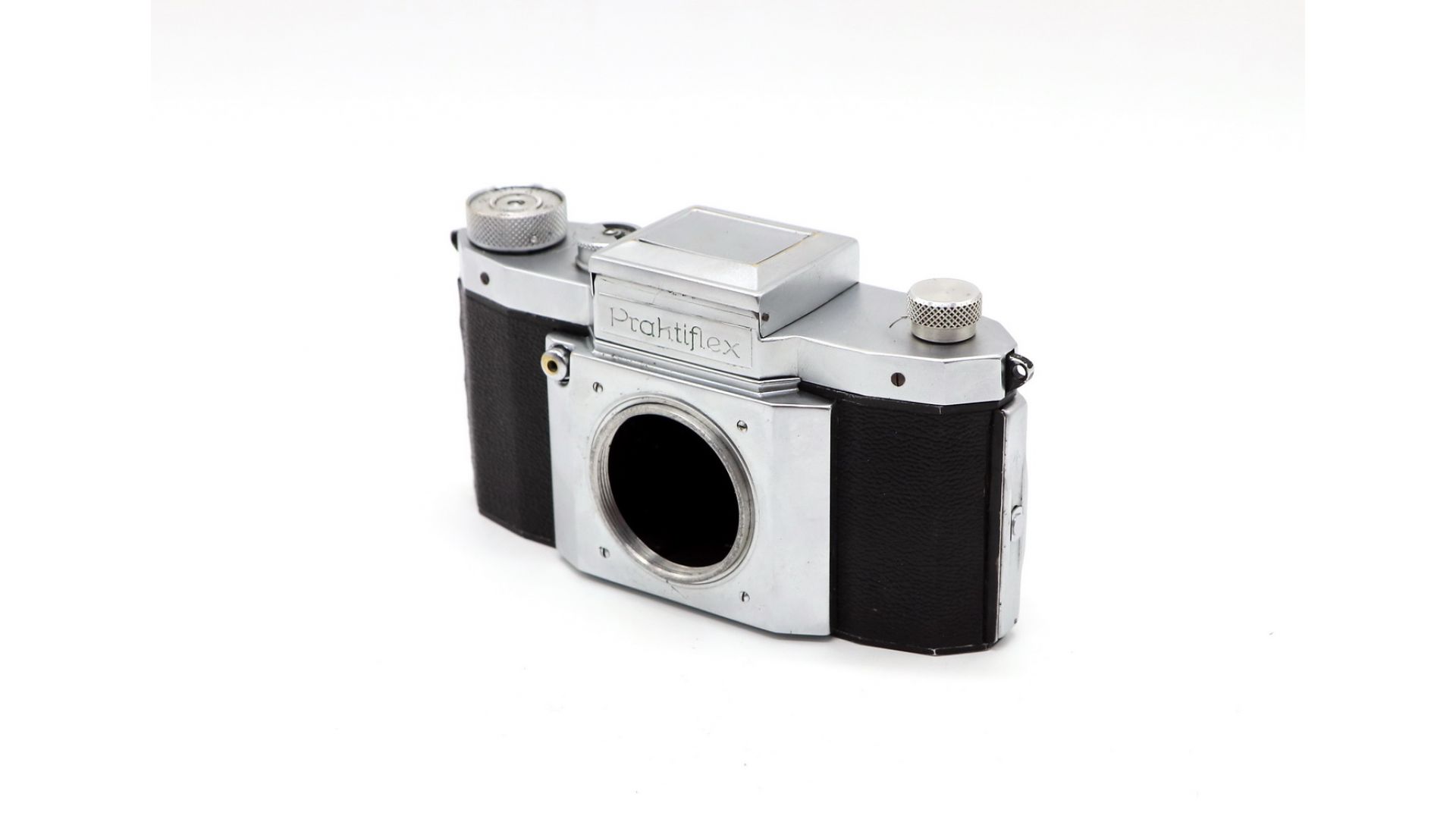 Корпус фотокамеры металлический со съёмной задней крышкой (замок в левой части корпуса), отделка чёрной кожей. Затвор: шторный, с горизонтальным движением матерчатых шторок. Шкала выдержек — 1/25, 1/50, 1/100, 1/500 с и «B» . Видоискатель: шахтный, с матовым стеклом и откидной лупой; возможно прямое наведение через окно в крышке зеркального видоискателя, возвратное зеркало. Размер кадра 24×36 мм.