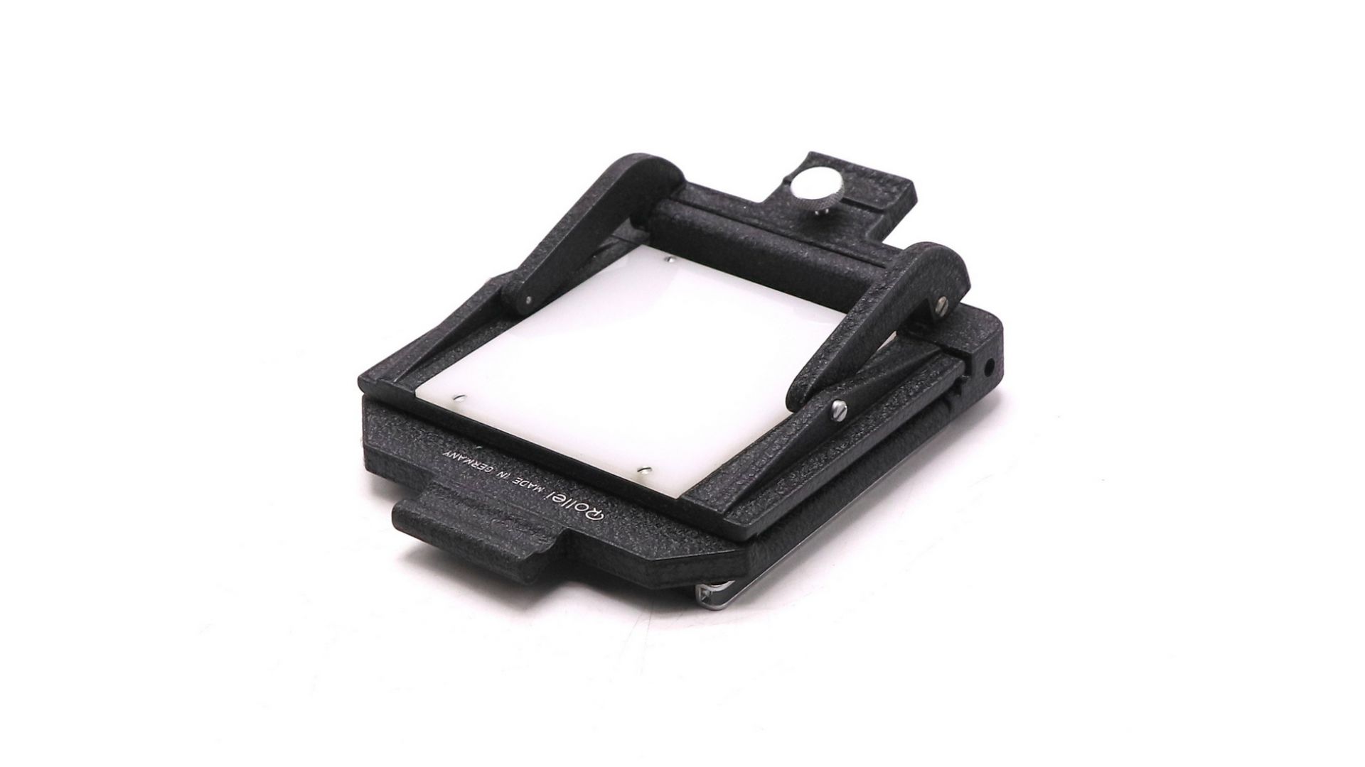 Устройство представляет собой компактный модуль со встроенным матовым стеклом, осветителем и креплением для камеры. Оно устанавливается вместо объектива на байонет SL66, превращая систему в точный репродукционный стенд. Это профессиональное решение для создания дубликатов, репродукций или оцифровки (при съёмке на цифровую камеру через адаптер) архива слайдов с минимальными искажениями и максимальным использованием резкости родной оптики Rollei. Необходимый инструмент для серьёзной работы с архивом в студии.