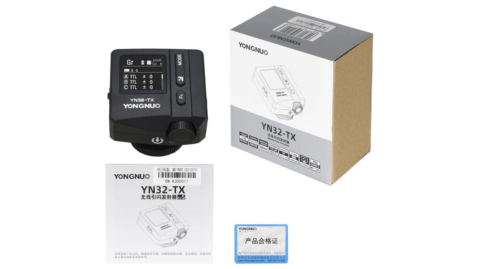 Комплектация:Радиосинхронизатор YongNuo YN32-TX