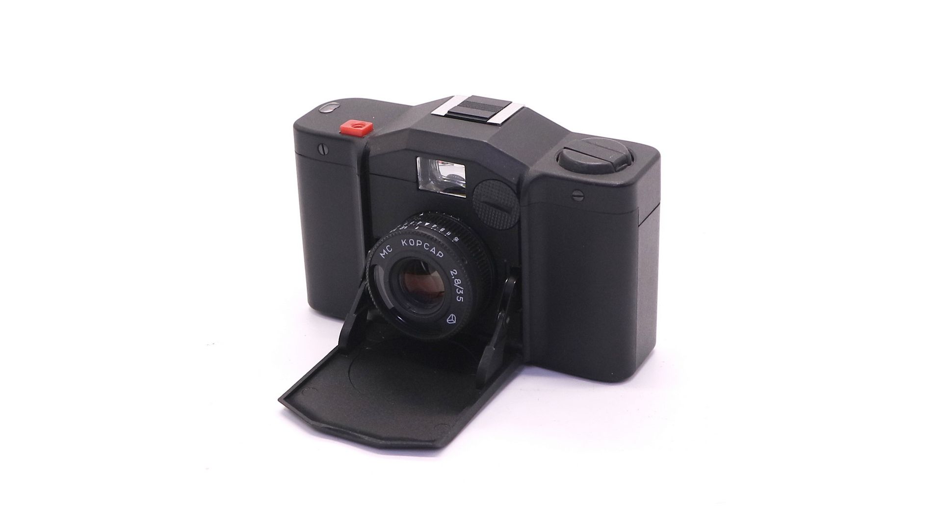 Корпус фотоаппарата пластмассовый с откидной передней панелью и автоматически выдвигающимся объективом. Фотографический затвор центральный с электронным управлением. Диапазон выдержек от 2 до 1/500 с и «В». Фокусировка по шкале расстояний от 1 метра до «бесконечности». Объектив несъёмный пятилинзовый «МС Корсар-5» 2,8/35 с многослойным просветлением. Тип применяемого фотоматериала — плёнка типа 135 в стандартных кассетах.