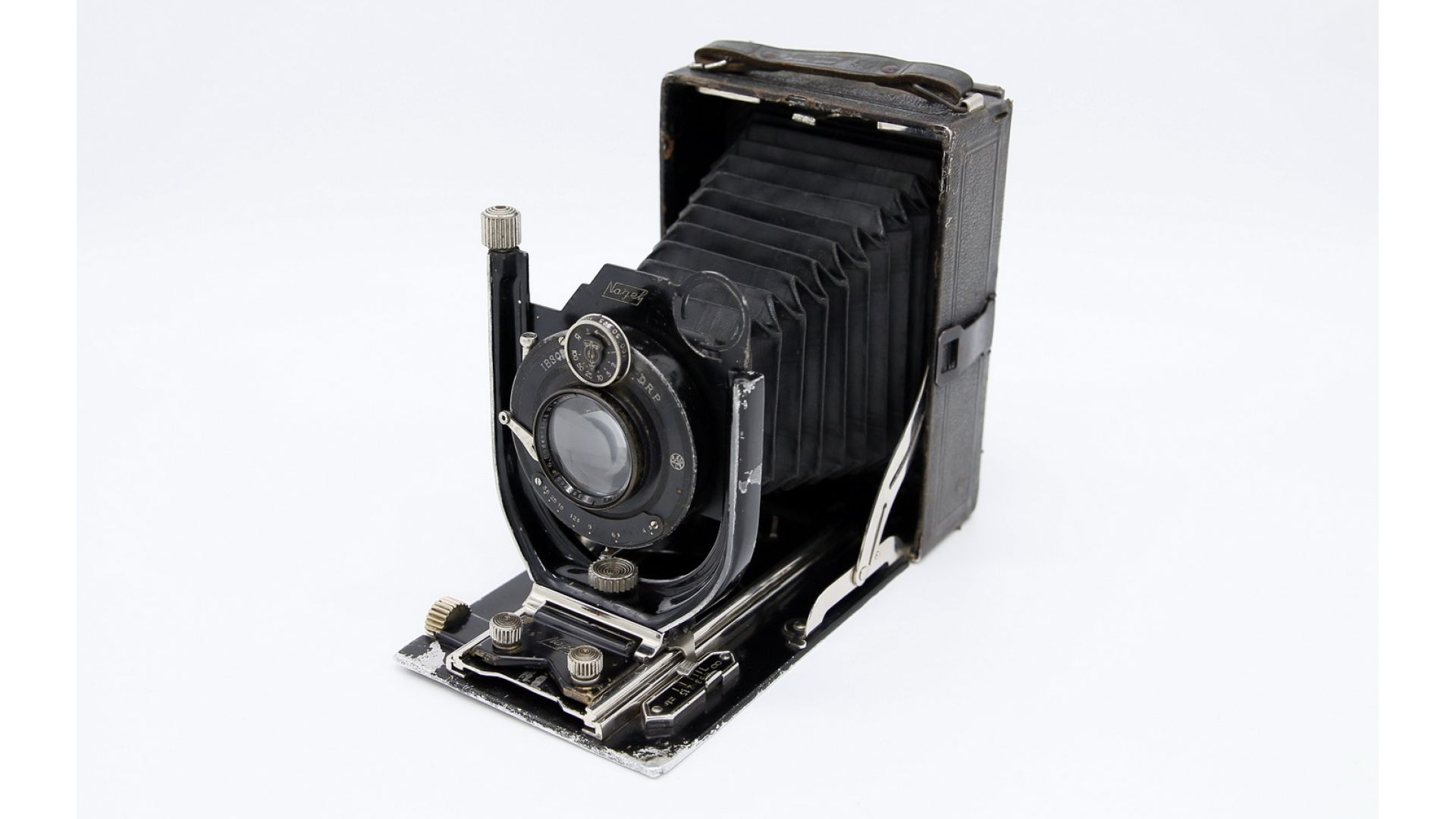 Одним из достоинств фотоаппарата является его компактность в сложенном виде. Прекрасная резкая оптика с отличной проработкой - Trinar-Anastigmat 4.5/13.5cm. Затвор Ibsor D.R.P. c выдержками 1 - 1/100, 1/50, 1/25, 1/10, 1/5, 1/2, 1 секунда плюс 'B' и 'Т'. Фотоматериал - пластины 9х12см. Превосходный, редкий, экземпляр для коллекции.