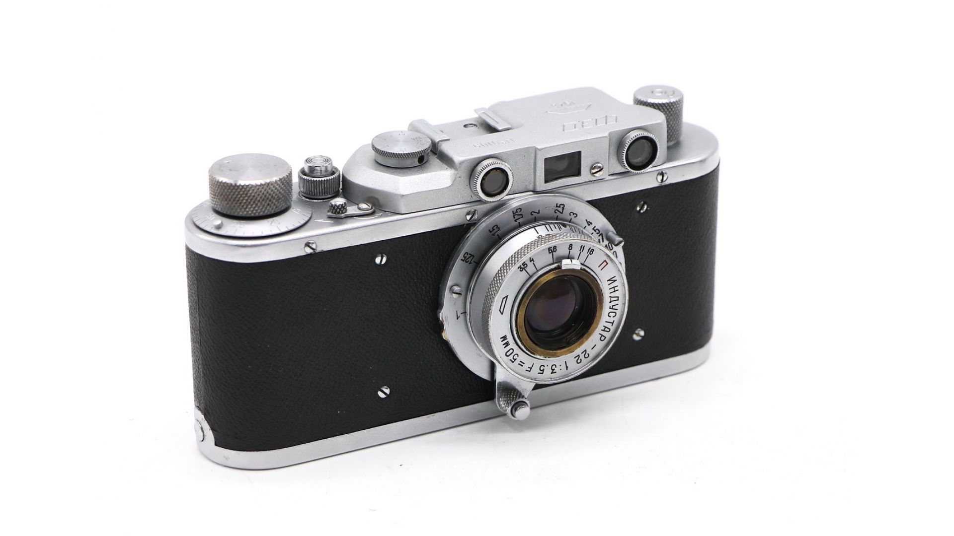 Данный экземпляр является копией немецкого фотоаппарата «Leica II». Имеет шторно-шелевой затвор из матерчатых прорезиненных шторок с выдержками: «Z», 1/20, 1/30, 1/40, 1/60, 1/100, 1/200, 1/500, 1/1000 сек. Съемная нижняя крышка для зарядки камеры, для работы с пленкой используются как стандартные кассеты, так и двухцилиндровые с раскрывающейся широкой щелью. Синхроконтакт и автоспуск отсутствуют. Фотоматериал - пленка типа 135, размер кадра - 24×36 мм. Достойный уникальный экземпляр для коллекции!