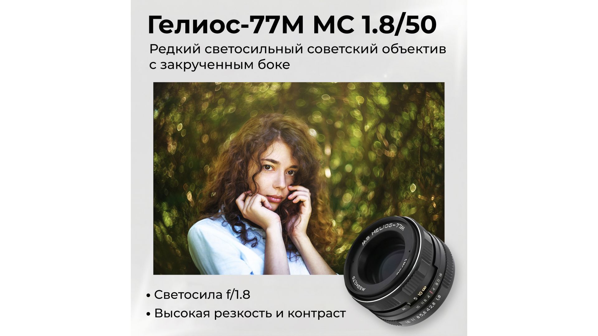 Объектив Гелиос-77М МС 1.8/50 — редкий советский стандартный объектив с высокой светосилой f/1.8, создающий характерный эффект закручивания зон нерезкости и выразительное боке.