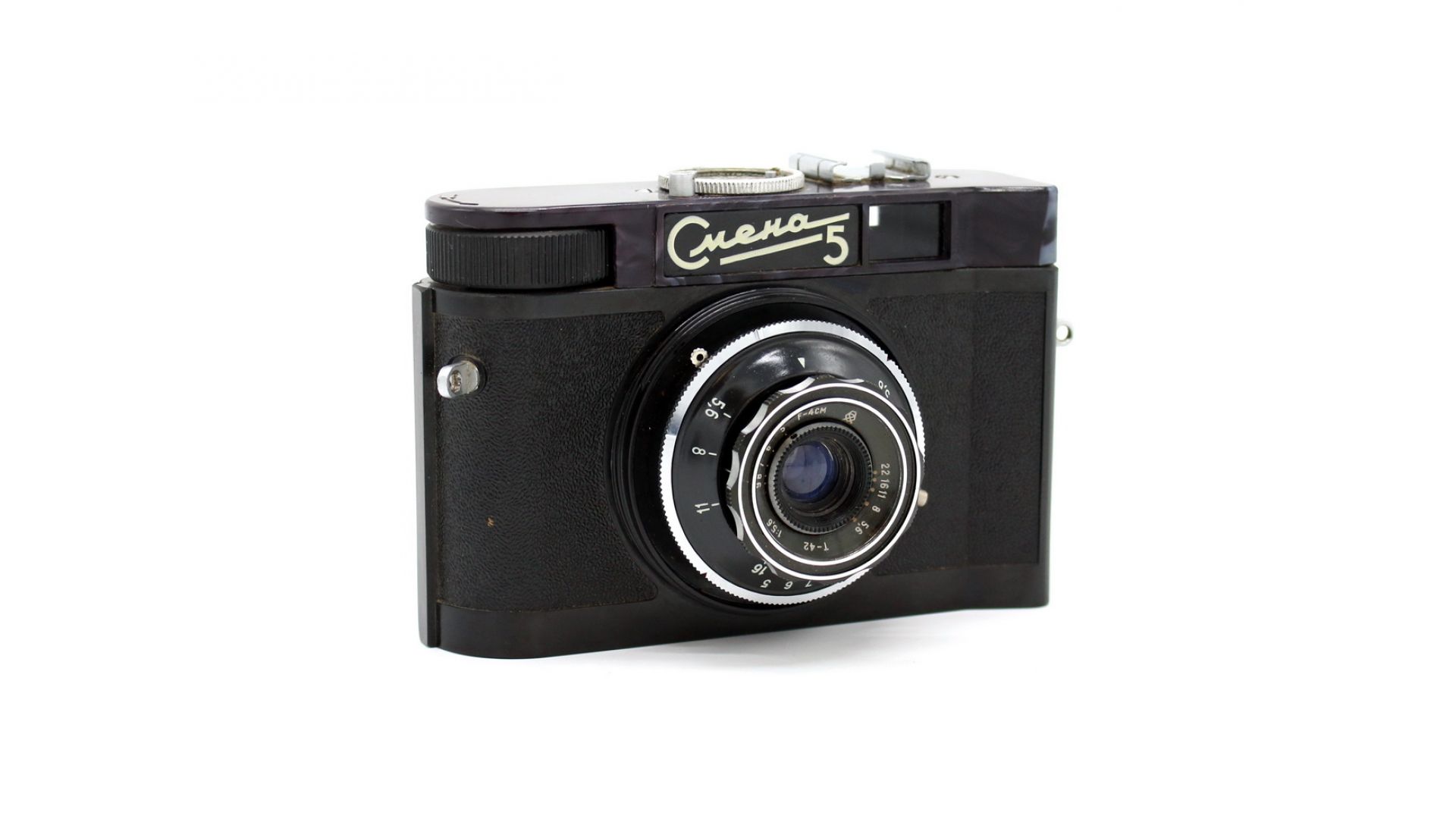 Корпус бакелитовый, задняя стенка съёмная. Перемотка плёнки полускрытой головкой. Взвод затвора раздельный от перемотки плёнки. Центральный фотографический затвор, выдержки 1/250 — 1/30 и «В». Объектив Триплет «Т-42» 5,6/40. Фокусировка от 1,3 м до «бесконечности» по шкале расстояний. Фотоматериал плёнка типа 135, размер кадра 24×36 мм.