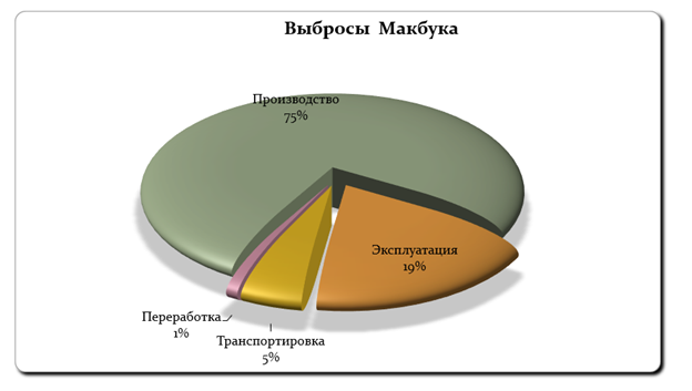- Ученые посчитали - за время производства и рекомендованный 4-годичный жизненный цикл всего лишь один «Макбук» обходится нашей экологии в 690 килограммов углекислоты, выброшенной в атмосферу, причем львиная часть – именно на производство компонентов и их сборку (смотрите график ниже).