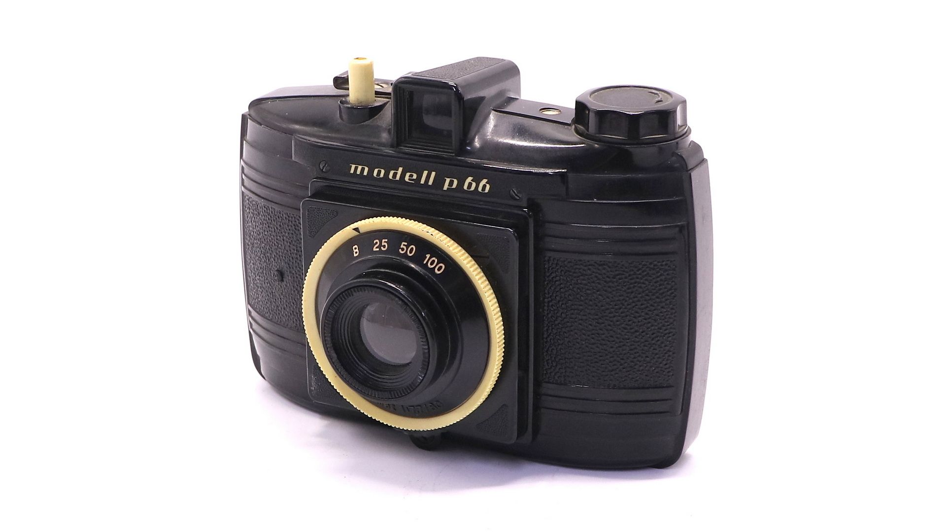 Вместо рамочного искателя у него имеется оптический видоискатель. Объектив такой же, как и в оригинальной модели. Диафрагма устанавливается с помощью колесика под объективом (и предположительно представляет собой набор из трех круглых отверстий в колесе, а не регулируемую диафрагму). Затвор теперь имеет выдержку от 1/25 до 1/100 секунды плюс «B», установленную с помощью рифленого (пластикового) обода вокруг корпуса затвора. Спусковая кнопка затвора теперь находится на верхней части корпуса.