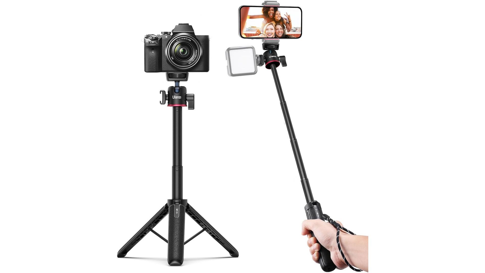 Ulanzi MT-73 — это универсальная рукоятка-штатив 2-в-1 для съемки в любых условиях. Телескопированная ручка выдвигается до 54 см для групповых селфи, а складные ножки обеспечивают устойчивую установку на столе или другой ровной поверхности.