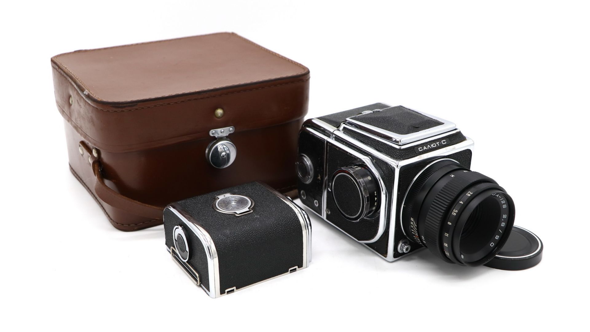 Данный экземпляр отличается от «Салюта» только другим объективом — «Вега-12В» (2,8/90) с прыгающей диафрагмой, не требовавшей предварительного взвода. Затвор шторный фокальный с металлическими гофрированными шторками из нержавеющей стали с диапазоном выдержек от 1/2 до 1/1000 с и «В». Размер кадра 6×6 см. Тип фотоплёнки — 120. Количество кадров — 12.