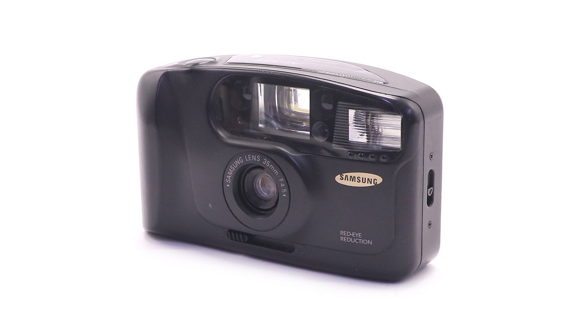 – Отличительные особенности: встроенный автофокус с системой ИК-определения дистанции, автоматическая вспышка с подавлением эффекта красных глаз. Объектив 35 мм F4.5, компактный корпус (14×7×3,5 см), питание от 2 батареек АА