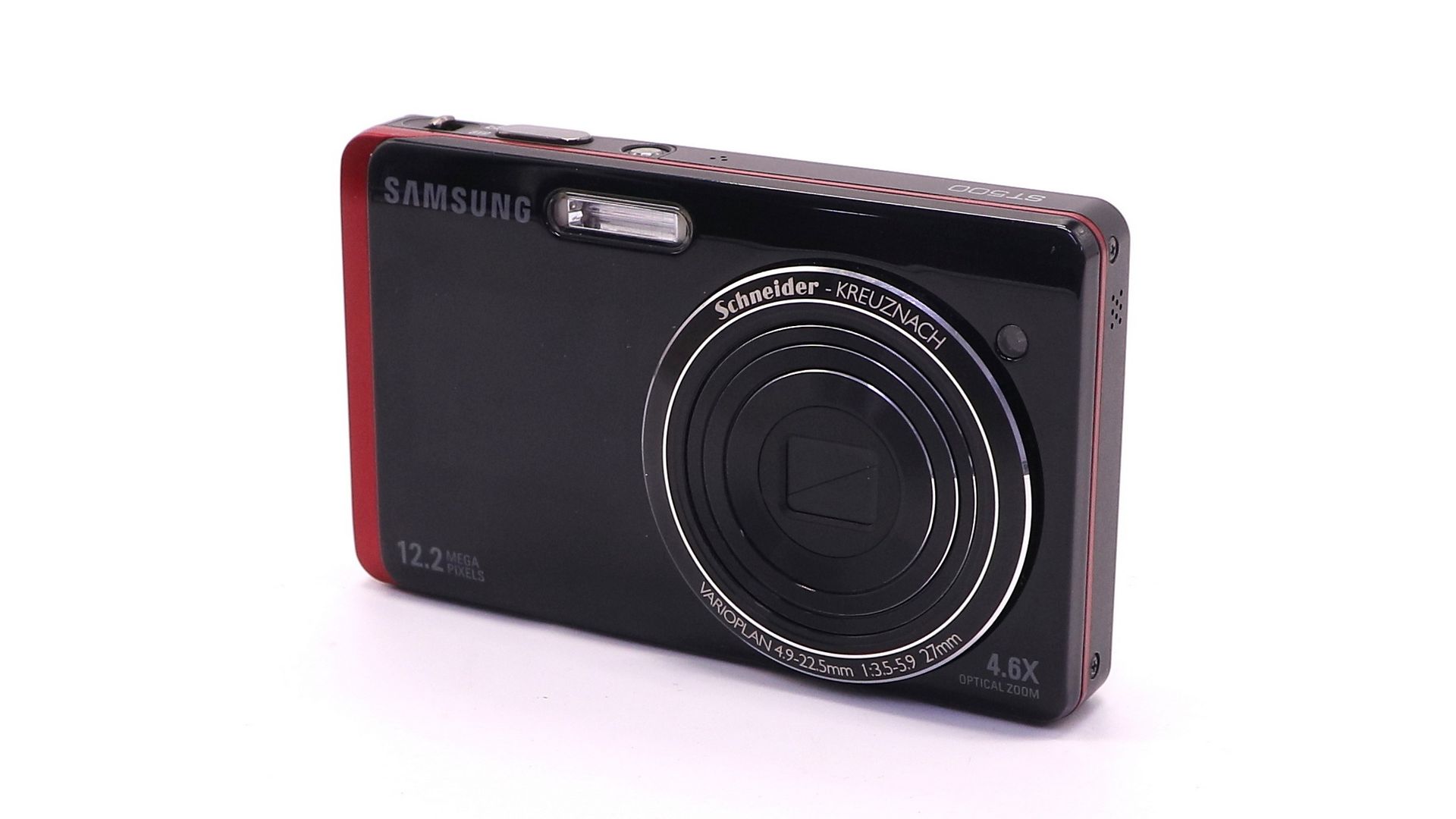 Камера Samsung ST500 оборудована 3-дюймовым широкоэкранным, сенсорным ЖК-дисплеем с разрешением 230 тыс. пикселов, а также с тактильной отдачей для удобства использования. Кроме того, камера оснащена 12,2-мегапиксельной ПЗС-матрицей и широкоугольным 27-миллиметровым объективом Schneider-KREUZNACH с 4,6-кратным трансфокатором, который дает более широкий угол охвата при съемке с близкого расстояния и большую глубину резкости всего кадра. Спереди модель оснащена дополнительным 1,5-дюймовым экраном, благодаря которому пользователь может делать фото, глядя на объект съемки в видоискатель, независимо от того, находится он перед камерой или за ней.