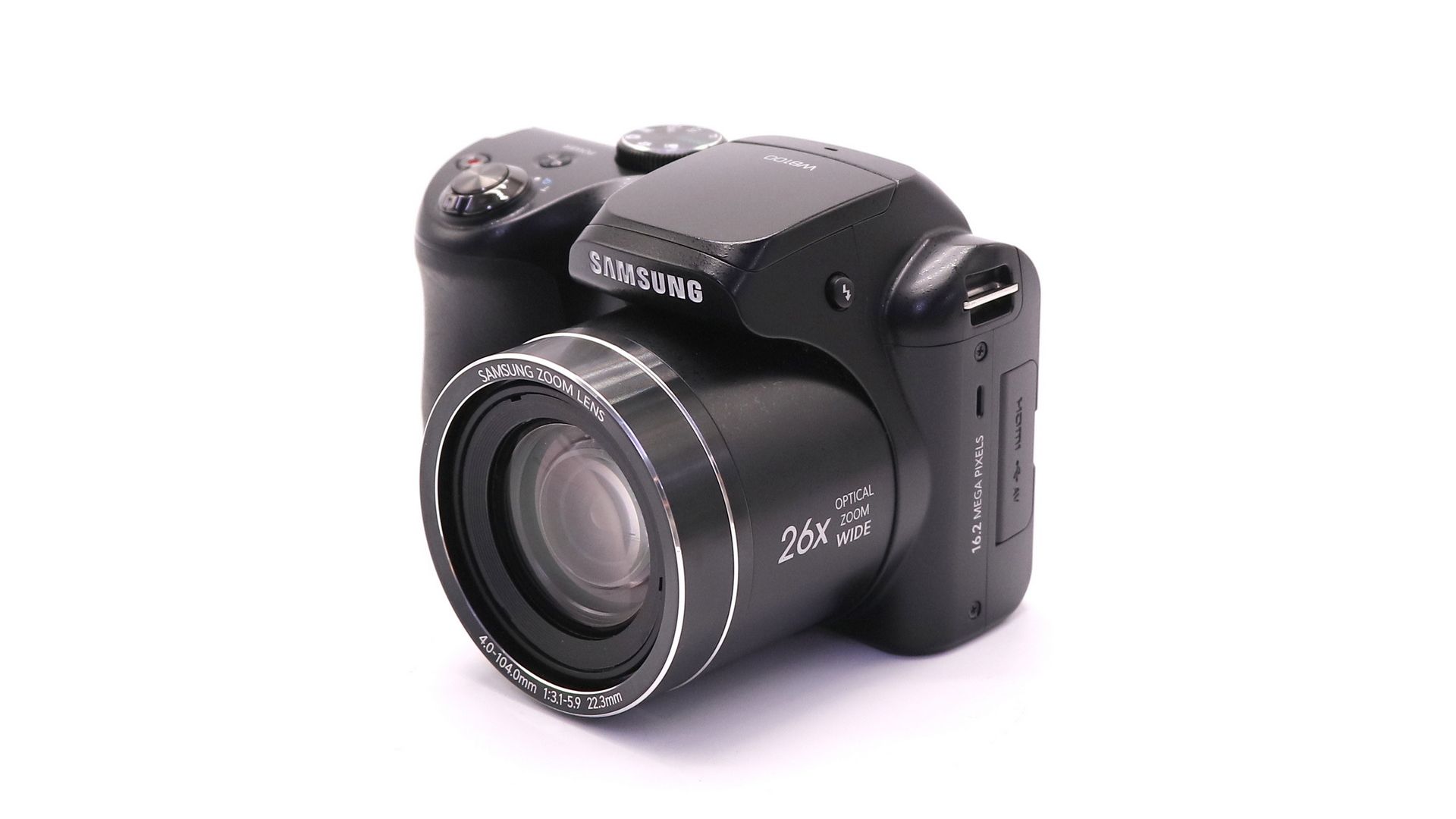 Оснащен объективом Samsung с 26-кратным уровнем оптического увеличения и позволит запечатлеть мельчайшие детали с большого расстояния. Двойная стабилизация изображения (оптическая и цифровая) позволит забыть, что такое нечеткие снимки. Объектив с фокусным расстоянием 22.3 мм обладает очень широким углом зрения. Режим Smart Auto анализирует ключевые элементы композиции и оптимизирует параметры съемки для получения наилучших снимков. Фотокамера записывает превосходное по качеству видео в формате HD 720p со скоростью 30 к/с. Работает от батареек АА. Samsung WB100 - прекрасная находка для начинающих фотолюбителей и путешественников.