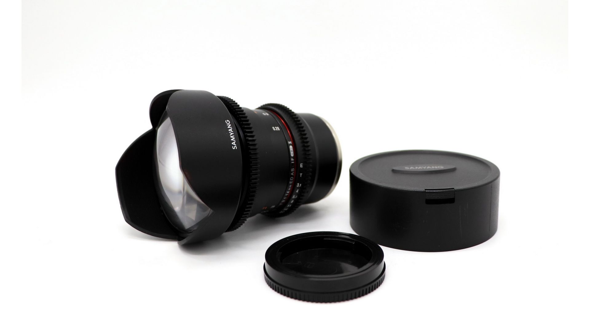 Установленная в этот объектив Samyang оптика включает в себя 14 элементов в 10 группах с учетом 3 элементов с высоким коэффициентом отражения, 2 ED линзы, асферический гибридный элемент и асферический элемент из стекла. Благодаря асферическому гибридному элементу снимки получаются особенно четкими и меньше страдают от таких негативных эффектов, как дисторсия и хроматическая аберрация. Фокусное расстояние объектива равняется 14 мм, что позволяет захватывать до 115.7° изображения в кадре. Его можно по праву назвать ультра широкоугольным объективом при использовании с полнокадровой или 35 мм зеркальной камерой. Минимальная дистанция фокусировки этого объектива Samyang составляет 11,02 дюйма. Объектив отлично подходит для съемки фильмов и видео.