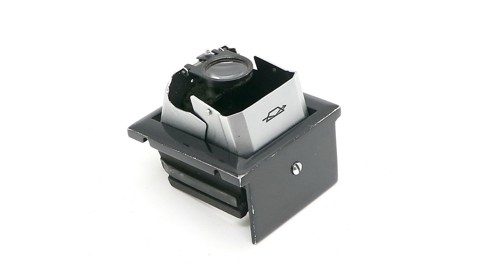 Шахта видоискателя позволяет рассматривать изображение на матовом стекле в лупу или без нее, а также производить визирование с помощью рамочного видоискателя.