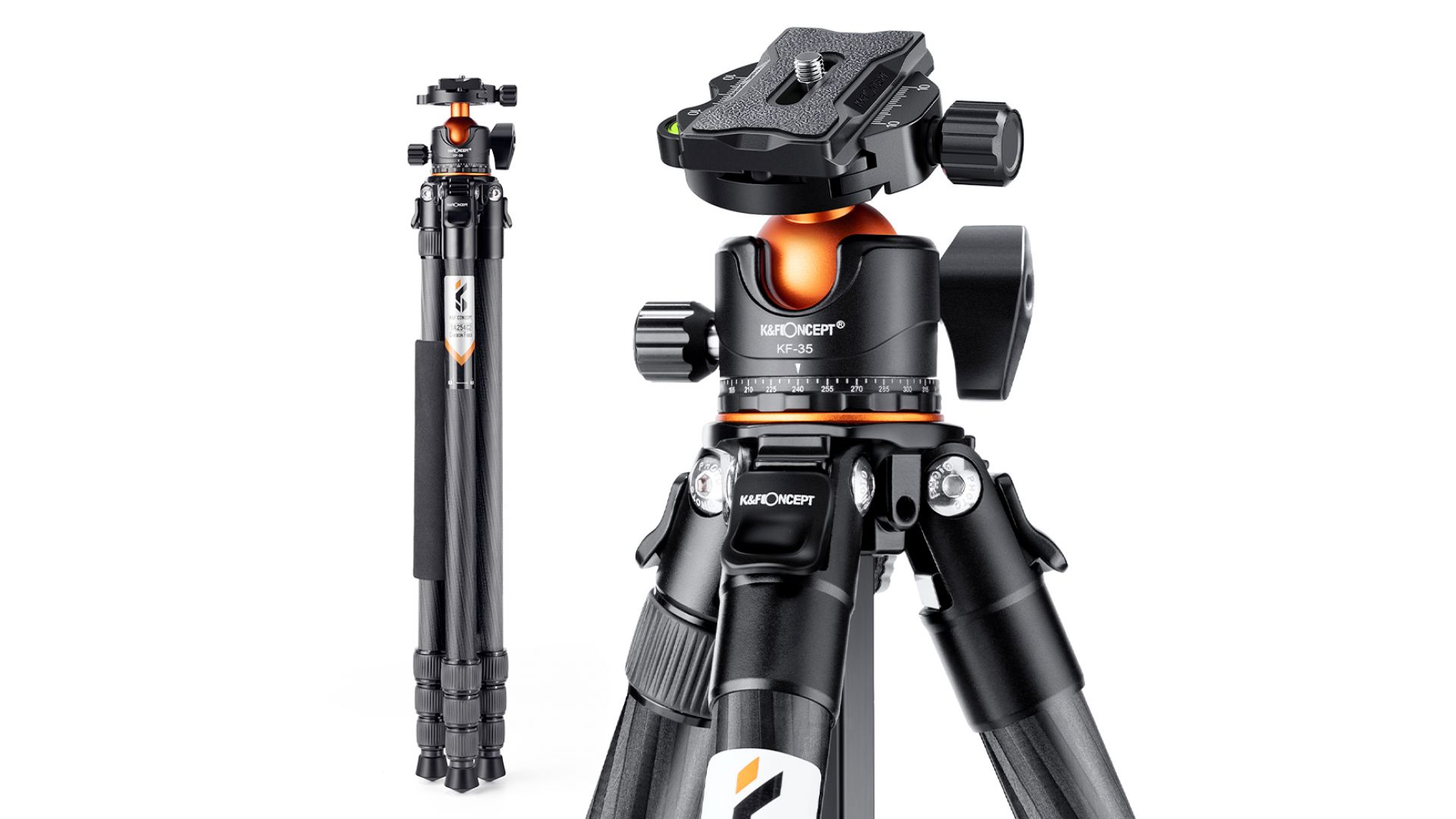 Штатив для камеры K&F Concept A254C4+BH-35L изготовлен из качественного углеродного волокна, что обеспечивает более прочную конструкцию, устойчивую к погодным условиям, коррозии и царапинам и в целом прочнее алюминия. Штатив весит всего 1,4 кг, имеет длину 58,5 см в сложенном состоянии, очень легкий и компактный, с грузоподъемностью до 15 кг, что делает его идеальным для фотосъемки в помещении и на улице.