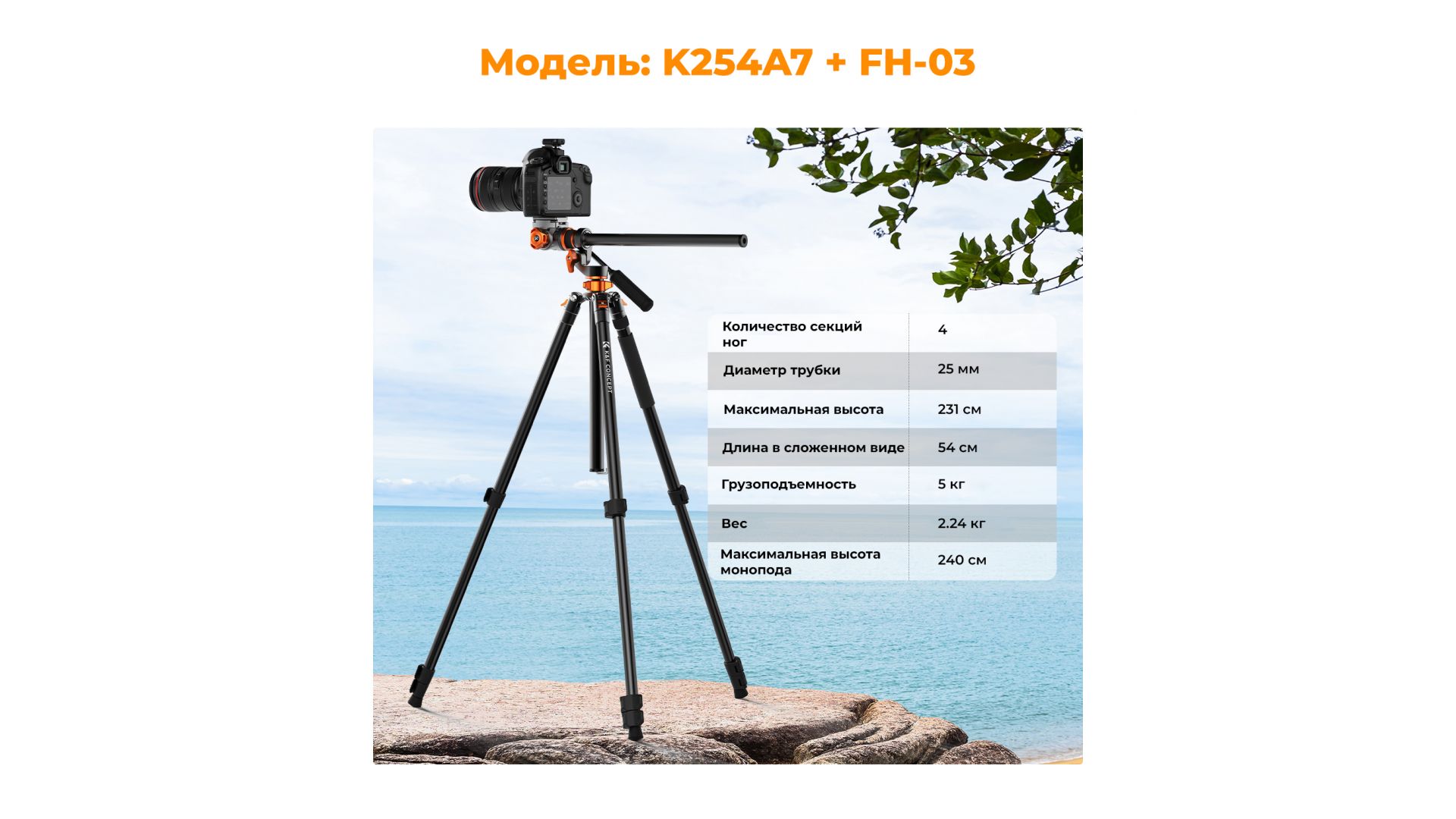 Штатив K&F Concept K254A7 + FH-03 KF09.137