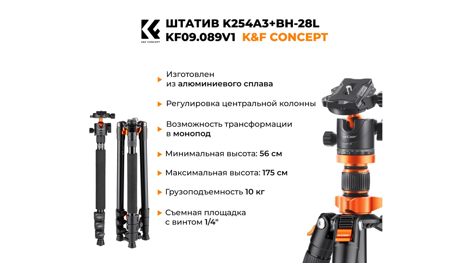 Штатив K&F Concept K254A3 + BH-28L KF09.089V1