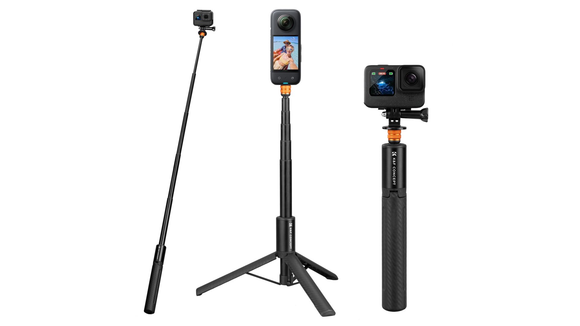 Штатив-монопод K&F Concept MS21 со спортивной камерой Insta 360 может заставить следы монопода автоматически исчезать, создавая потрясающий эффект слежения. Важно: Чтобы добиться этого, держите ножки штатива закрытыми, а палку - вертикально по отношению к камере.
