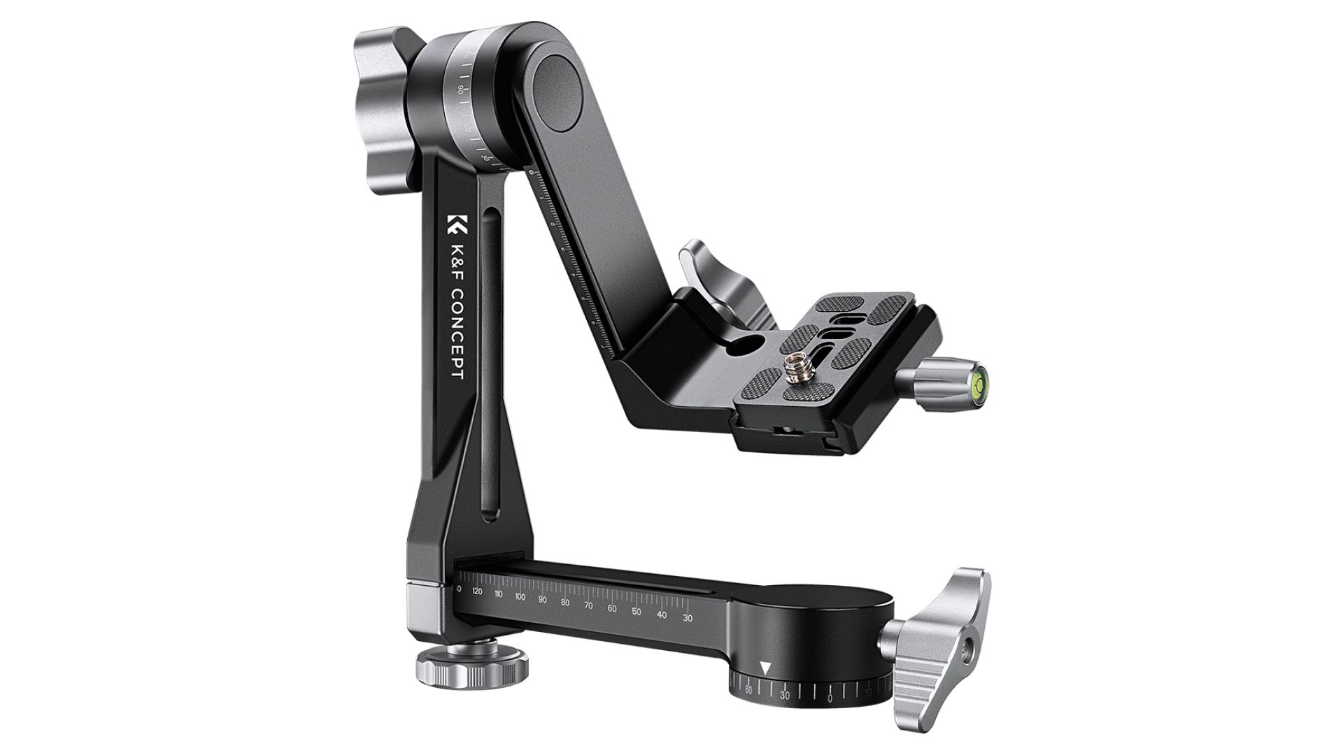 Основание и вертикальный рычаг поворачиваются на 360°, основание имеет горизонтальную шкалу 360°, а рычаг имеет горизонтальный и вертикальный ход 100 мм. Большая камера может оставаться под любым углом, так как она имеет сильную демпфирующую силу блокировки.