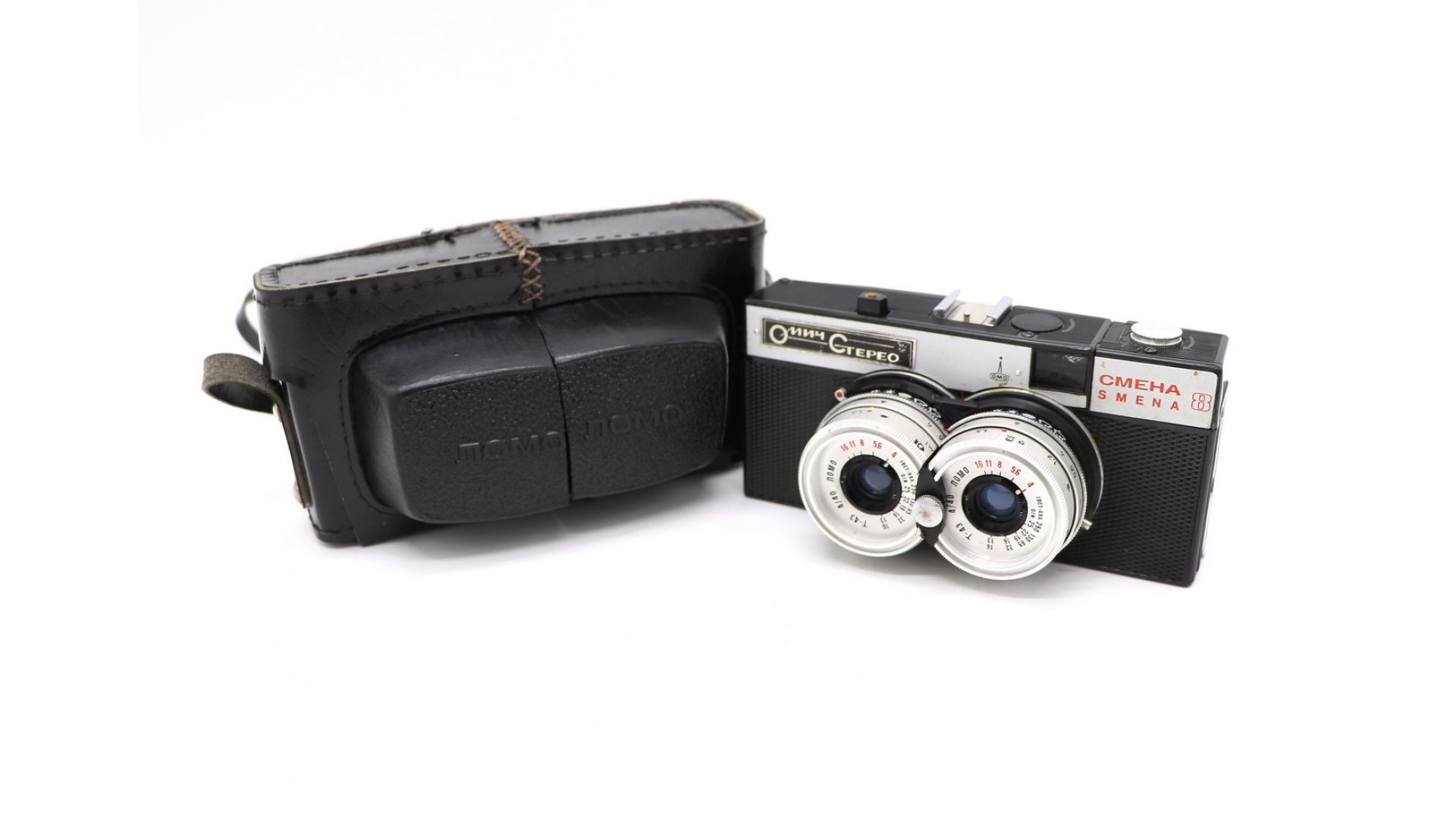 Модель разрабатывалась параллельно с разработкой аппарата "Смена Символ" и представляет собой стерео-камеру формата 24х30. Затвор центральный залинзовый, с выдержками 1/15, 1/30, 1/60, 1/125, 1/250 и "В". Значение выдержек устанавливается на левом сопряженном объективе по цифровой, или символьной шкалам. Объективы "Т-43" (4/40) установлены на гиперфокальное расстояние. Видоискатель телескопический 0.6х со светящейся ограничительной рамкой в поле зрения. Очень интересный, необычный экземпляр.
