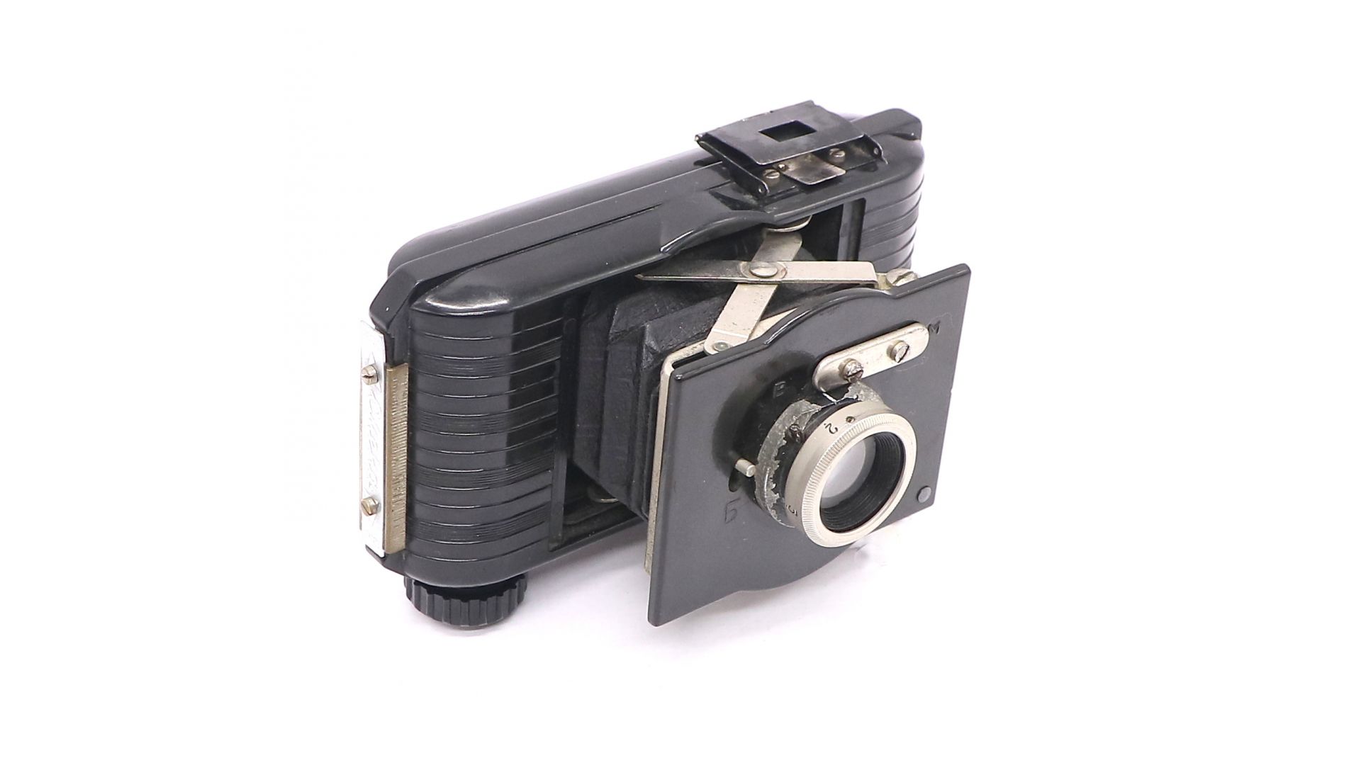 Складная клапп-камера под 35-мм фотокиноплёнку. Видоискатель рамочный складной. Конструктивно подобна камере «Kodak Bantam». Фокусировка: ручная по шкале расстояний
