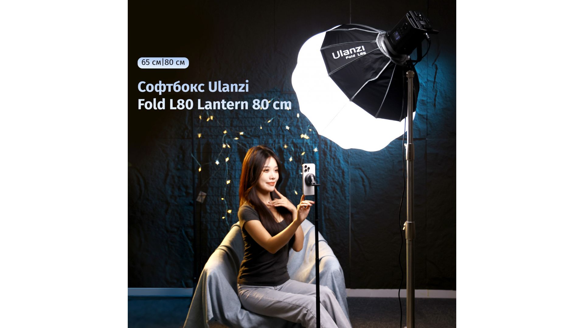 Софтбокс L80 серии Fold – идеальное решение для мягкого и равномерного освещения на съемках. Модель Lantern выполнена в форме сферы и оснащена байонетом Bowens, что обеспечивает совместимость с большинством студийных осветителей.