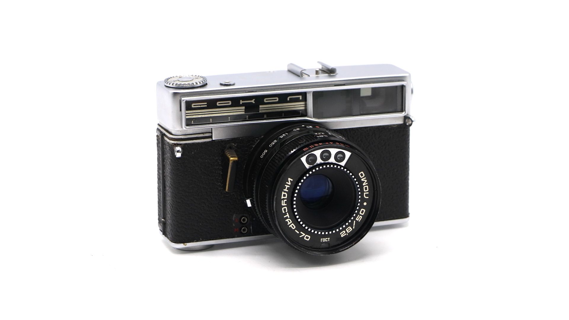 Советский дальномерный автоматический фотоаппарат Сокол Автомат. Редкая модификация с наименование Кириллицей и синхроконтактом. Таких камер было выпущено не более 70т. на весь СССР.