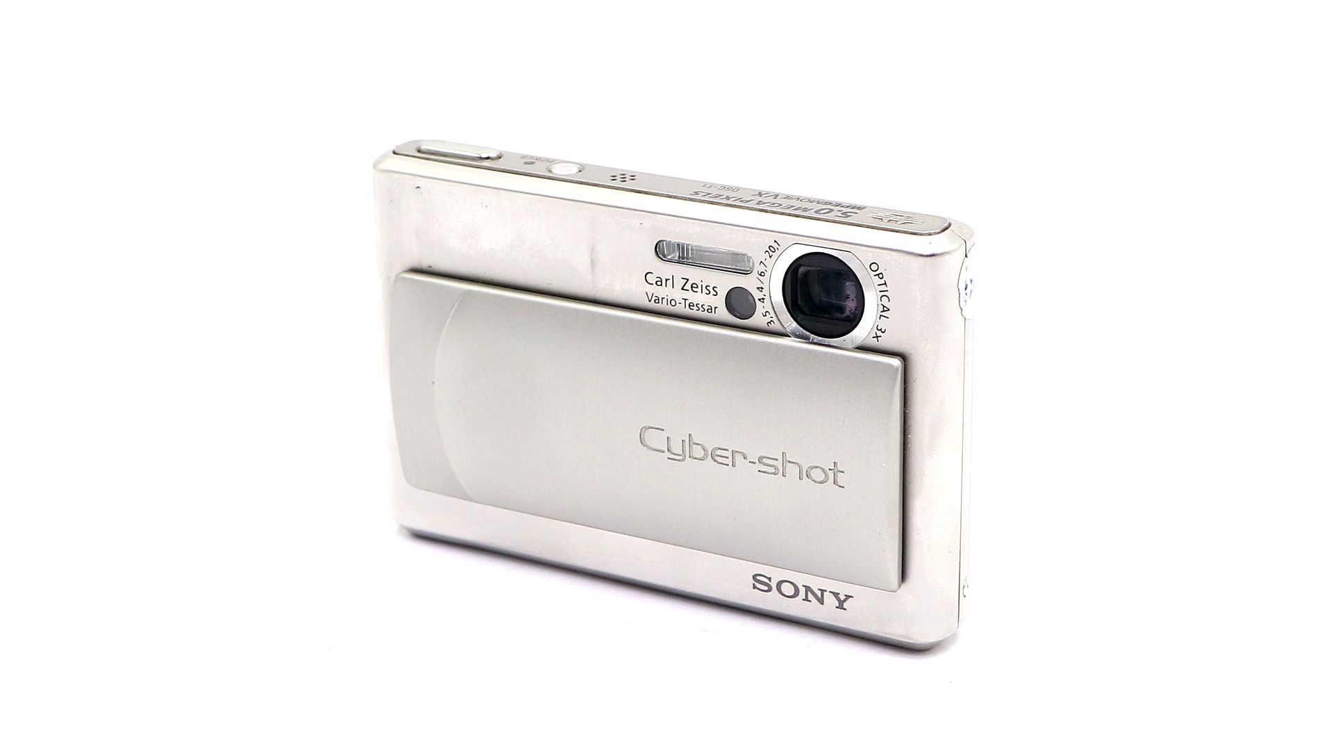 ПЗС 1/2,4" 5,1 млн. пикселей. Super HAD™ CCD. Максимальное разрешение 2592 х 1944 пикселей. 3-x зум-объектив Carl Zeiss Vario Tessar, фокусное расстояние 38-114мм в эквиваленте для 35мм. Большой ЖКД 2,5", 211000 точек. Запись видеоклипов с разрешением 640х480, 30 кадр/сек. Есть возможность добавления голосового комментария до 40 секунд.