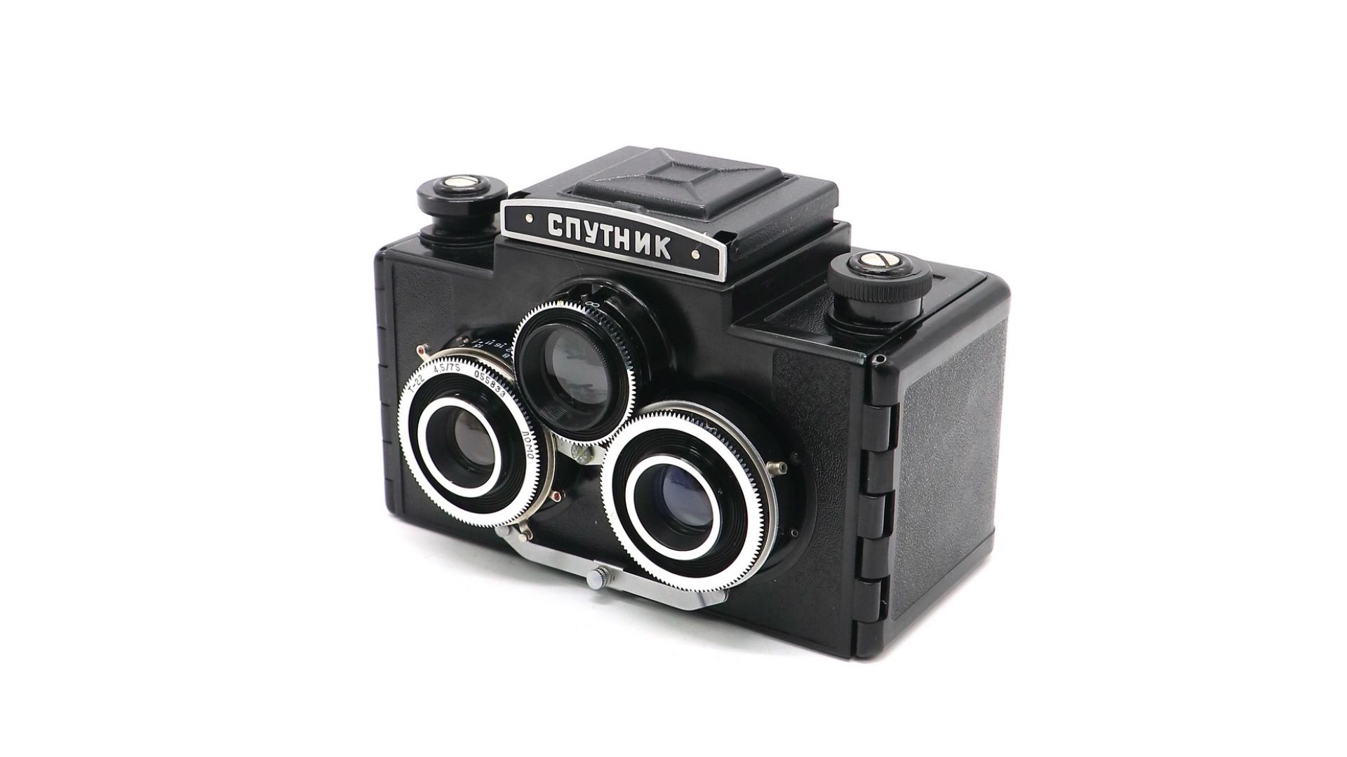 Корпус — пластмассовый, с открывающейся задней стенкой. Экземпляр оснащен двумя несъемными объективами Триплет «Т-22» 4,5/75 со стереобазой 67 мм. Фокусировка ручная одновременно двух съёмочных объективов и объектива видоискателя. Фотоаппарат предназначен для любительской и профессиональной стереоскопической фотосъёмки на чёрно-белую и цветную фотоплёнку типа 120. Размер кадров 60×60 мм. Зарядка фотоплёнкой (рольфильм) дает 6 стереопар, по 2 кадра в каждой паре.